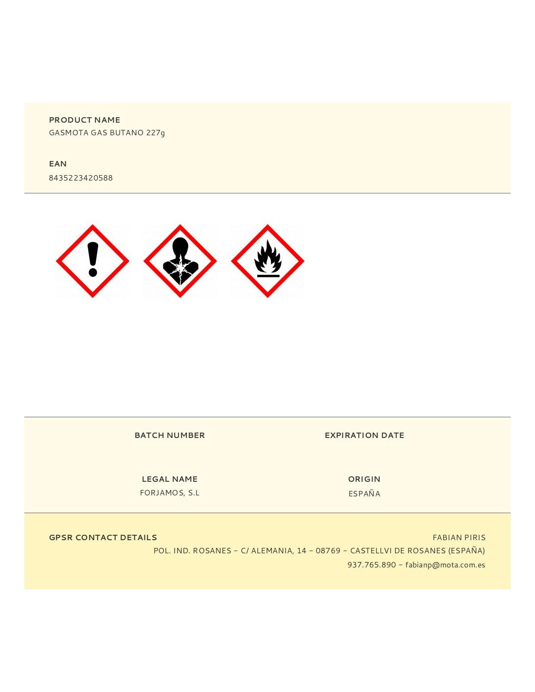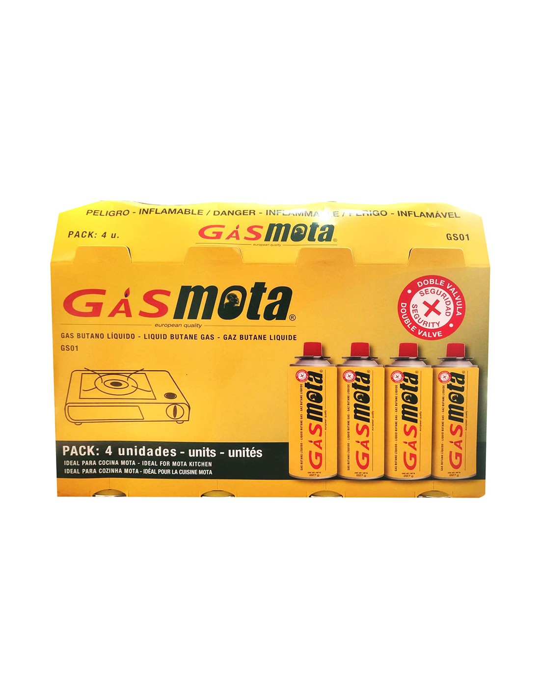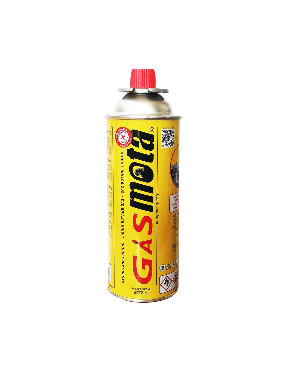Gasmota gas butano 227 g cartucho de gas butano ideal para todo tipo de cocina y soplete compatible. con doble válvula de seguridad.