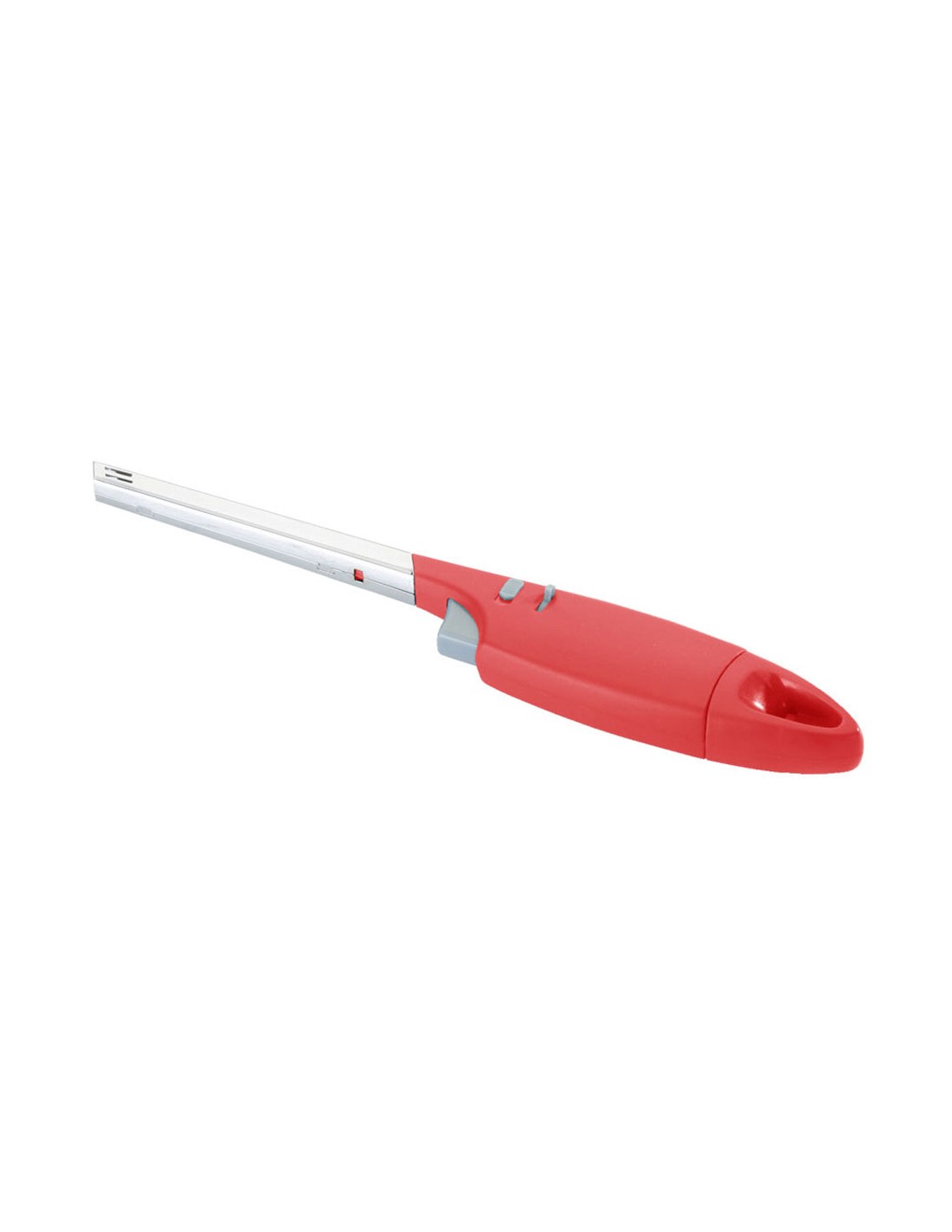 Encendedor rojo para todo tipo de cocinas de gas, hornos, barbacoas de jardín. llama ajustable. recarga con gas habitual para mecheros. cierre de seguridad