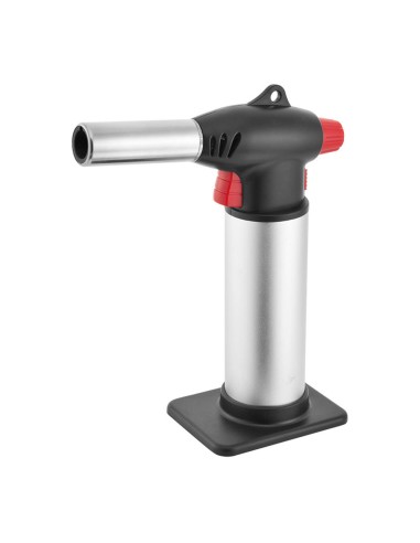 Excelente para flambear pasteles, caramelizar azúcar, gratinar con queso, asar verduras, elaborar carnes crujientes, aves, etc. con intensidad de llama ajustable y cierre de seguridad. fabricado de acero inoxidable y plástico, mango de aluminio pulido