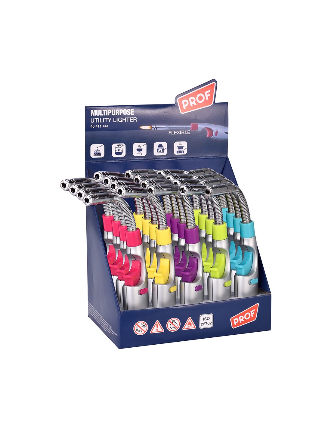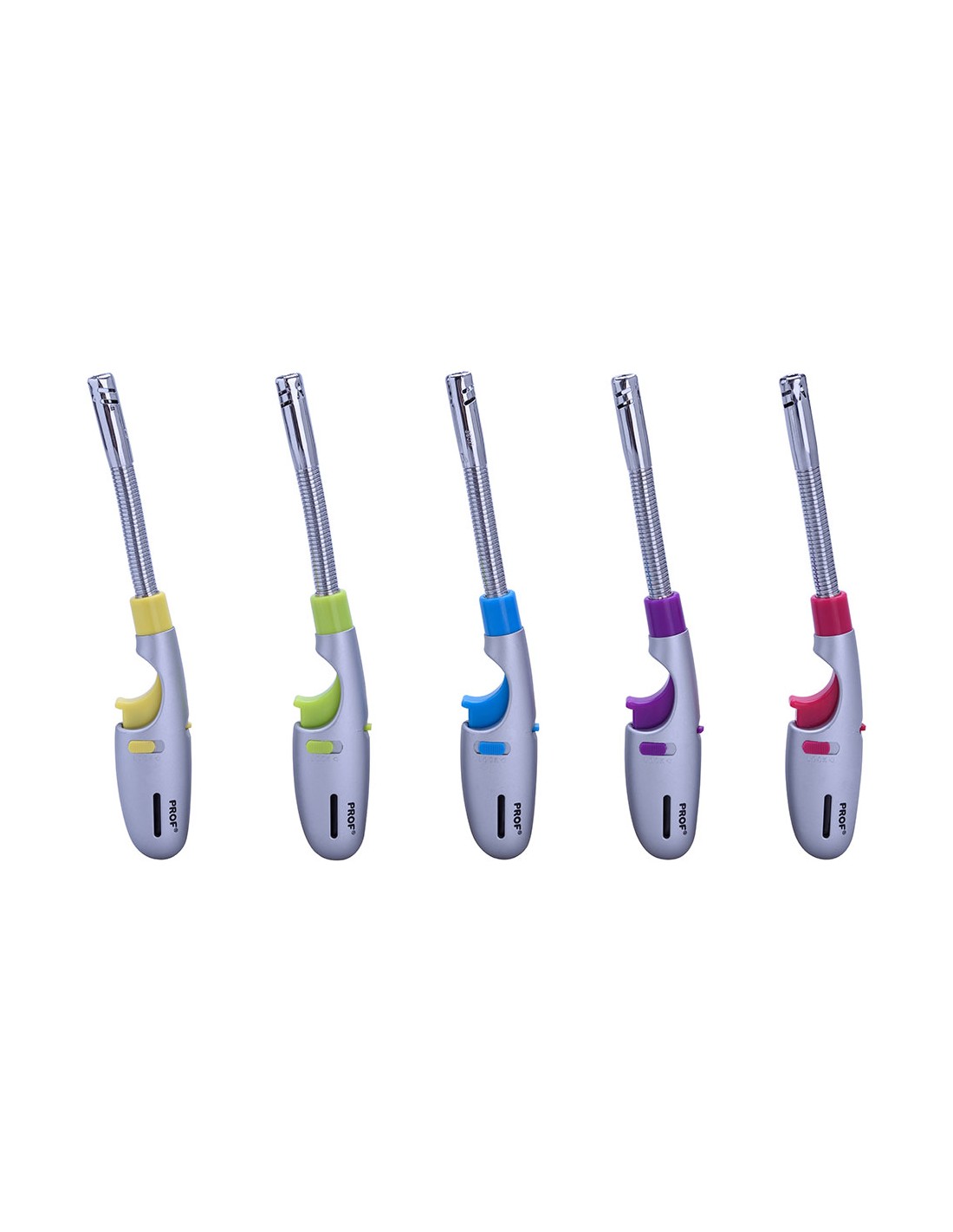 Encendedor electrónico, recargable, con cuello flexible. colores surtidos. medida: 19 x 3 x 2 cm