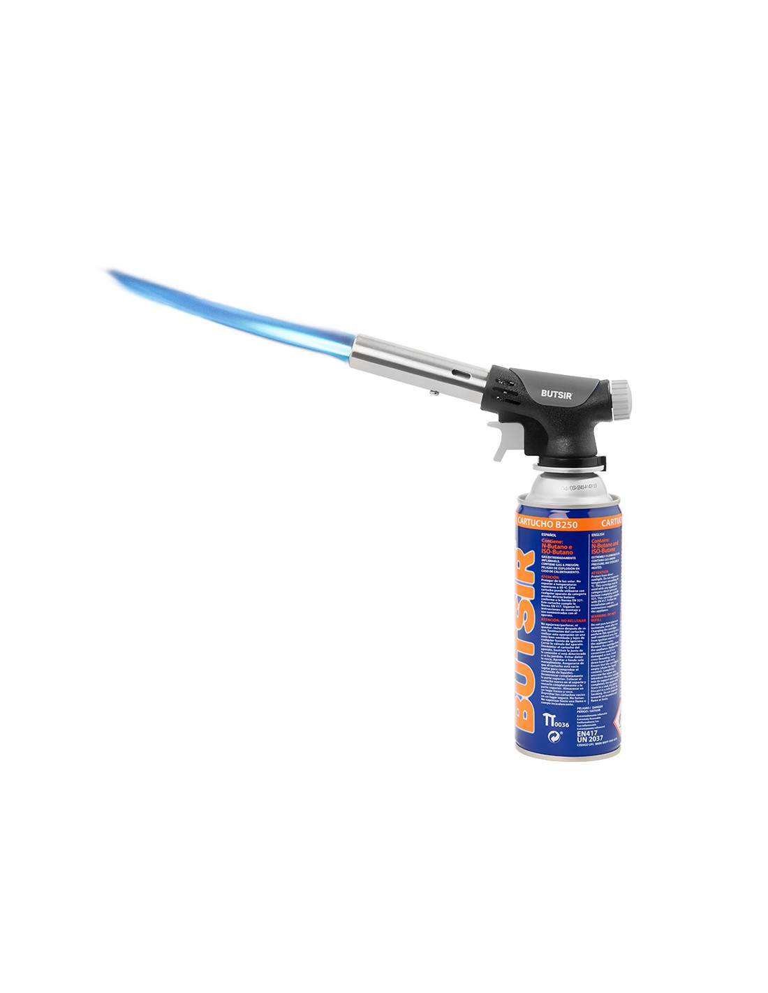 Soplete seguro, ligero y manejable. múltiples usos: bricolaje, trabajos manuales y modelismo, reparaciones eléctricas y electrónicas y aplicaciones en cocina. encendido piezoeléctrico. diseño ergonómico. para el correcto funcionamiento 360°, mantener encendido el soplete en posición vertical durante 45 segundos. alimentación: cartucho b-250 butsir (cartucho no incluido). potencia: 1000 w. consumo: 80 g/h