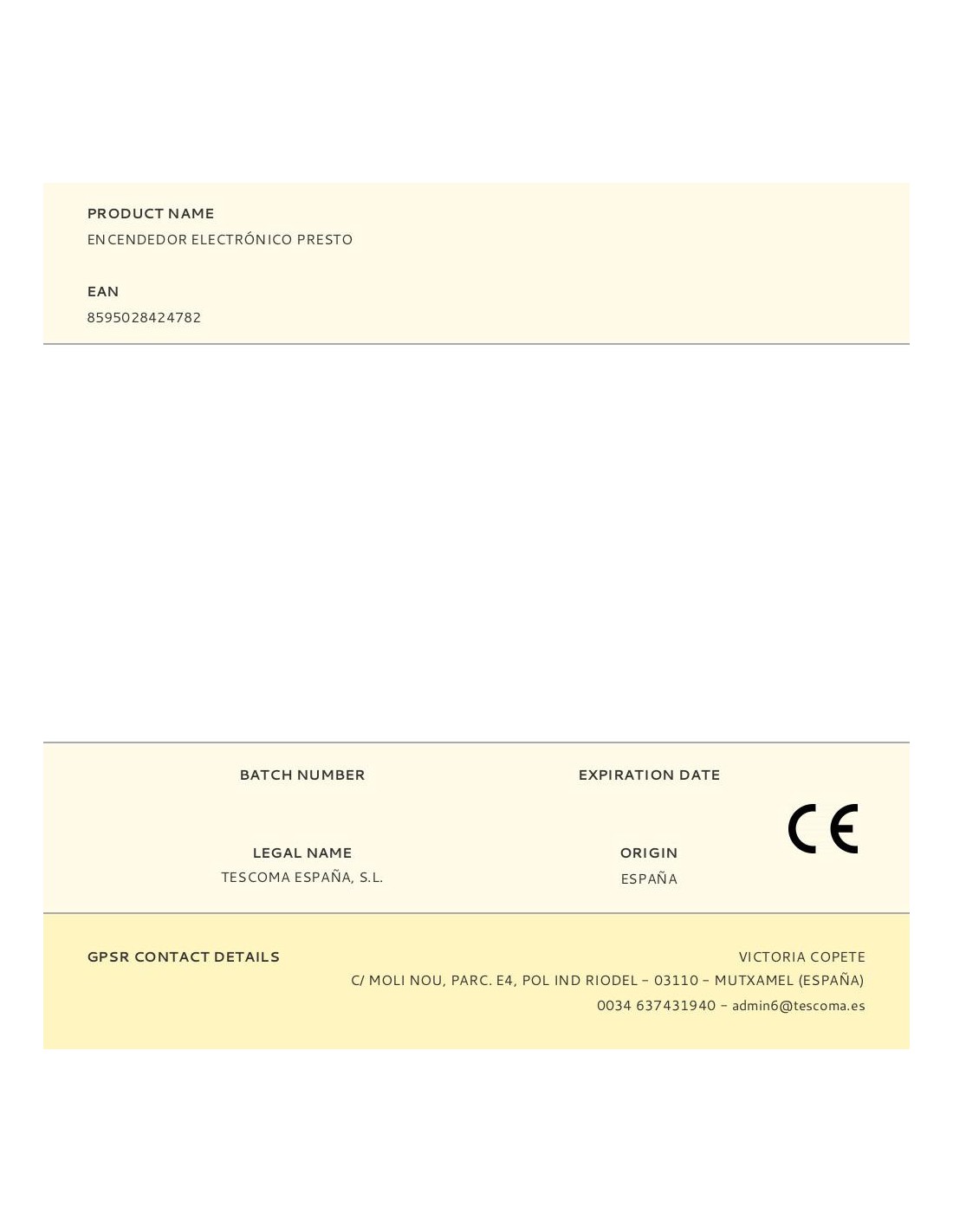 Encendedor electrónico presto ideal para encender cocinas de gas. funciona con 1 pila aa (incluida)