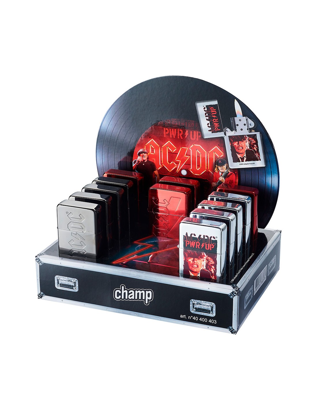 Mechero gasolina ac/dc, modelos variados. presentado en expositor de 12 uds