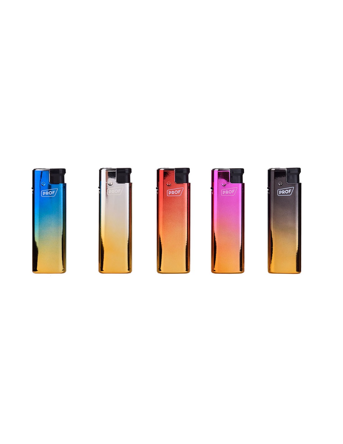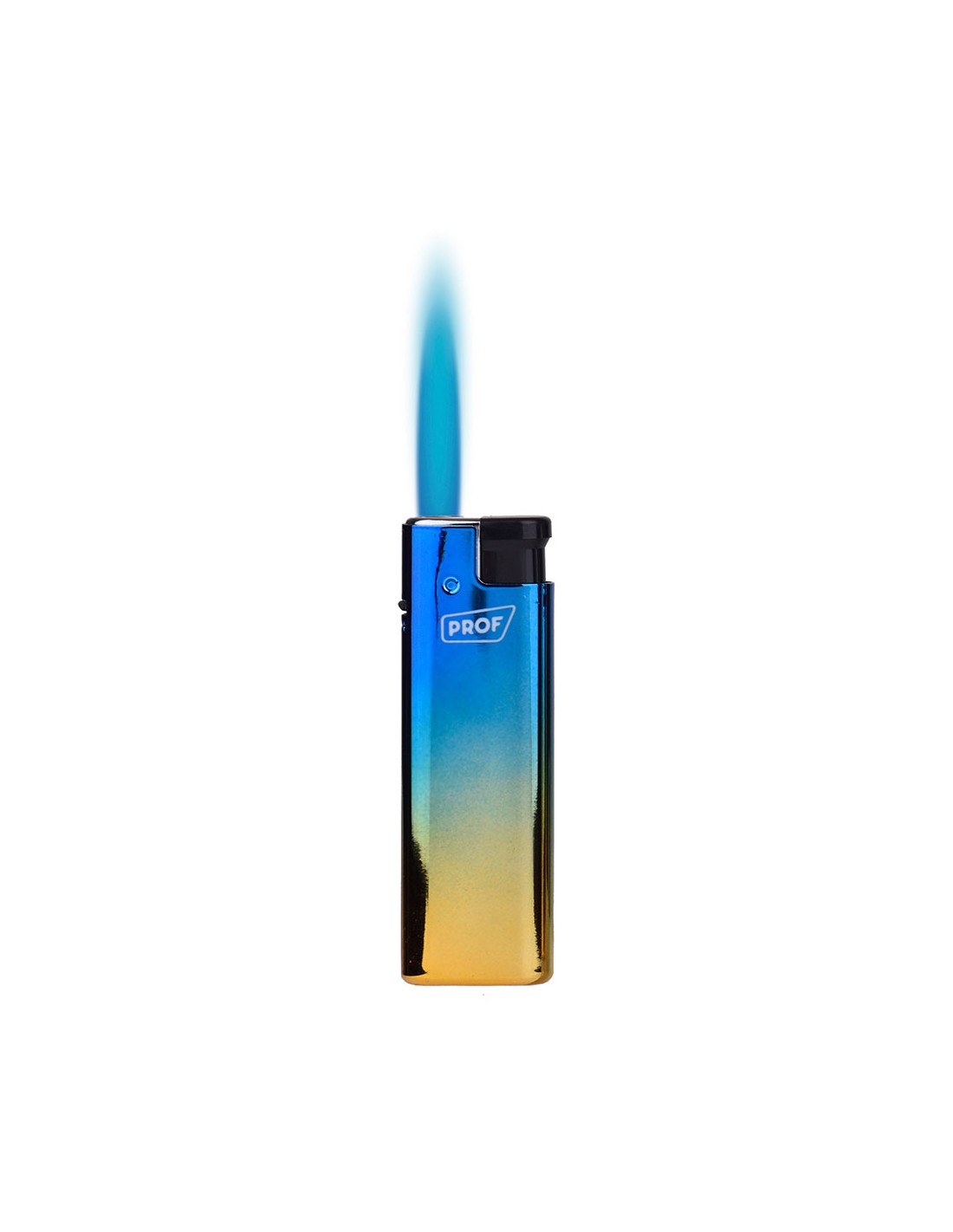 Encendedor electrónico anodized metal case, llama azul, colores surtidos. presentado en expositor de 25 uds
