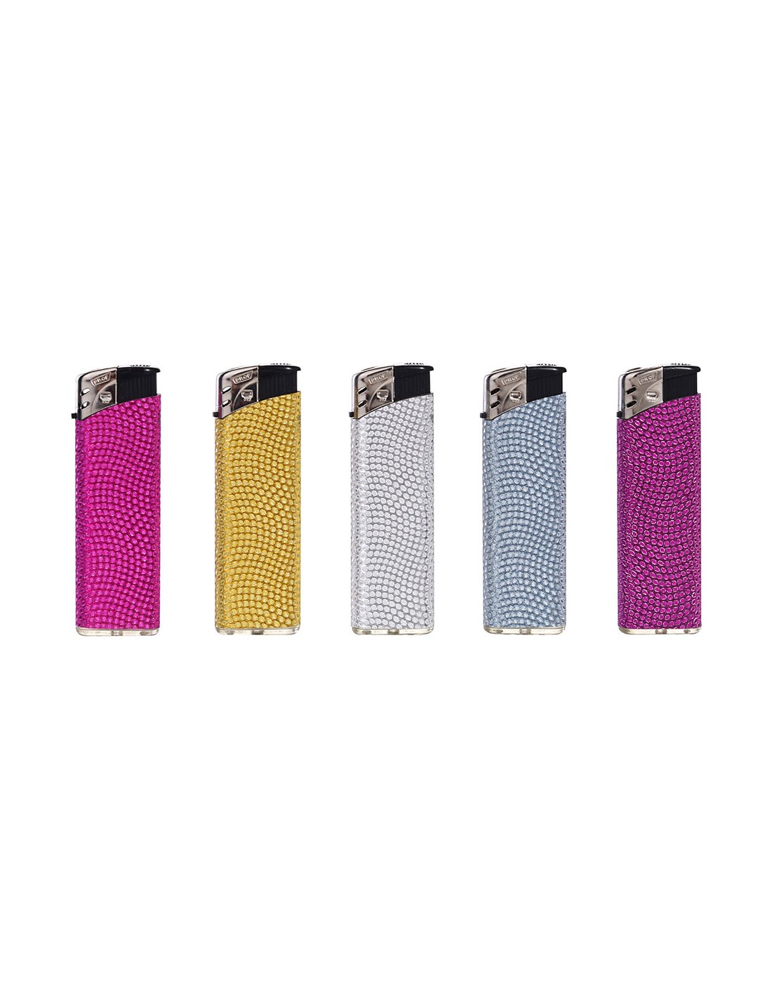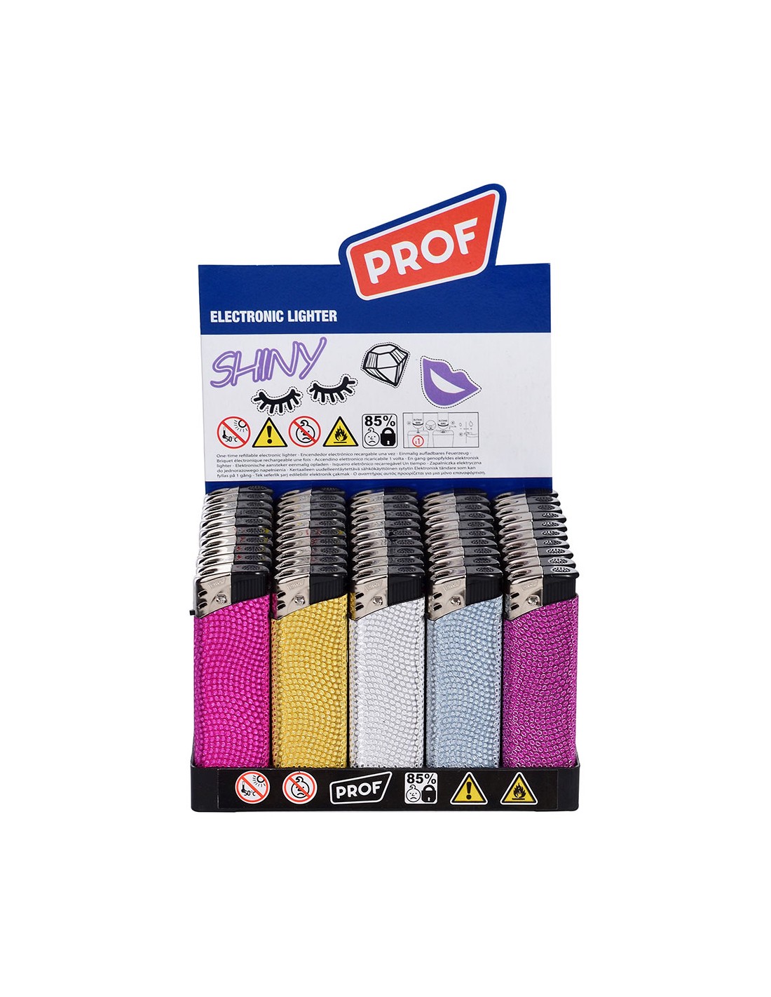 Encendedor electrónico shiny, colores surtidos. presentado en expositor de 50 uds