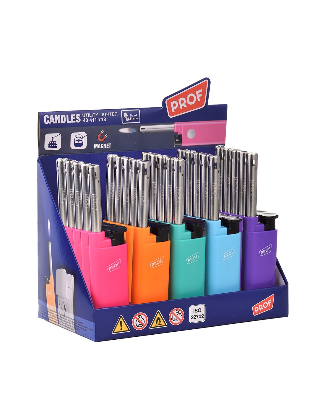 Encendedor electrónico recargable, magnético, colores surtidos. presentado en expositor de 25 uds