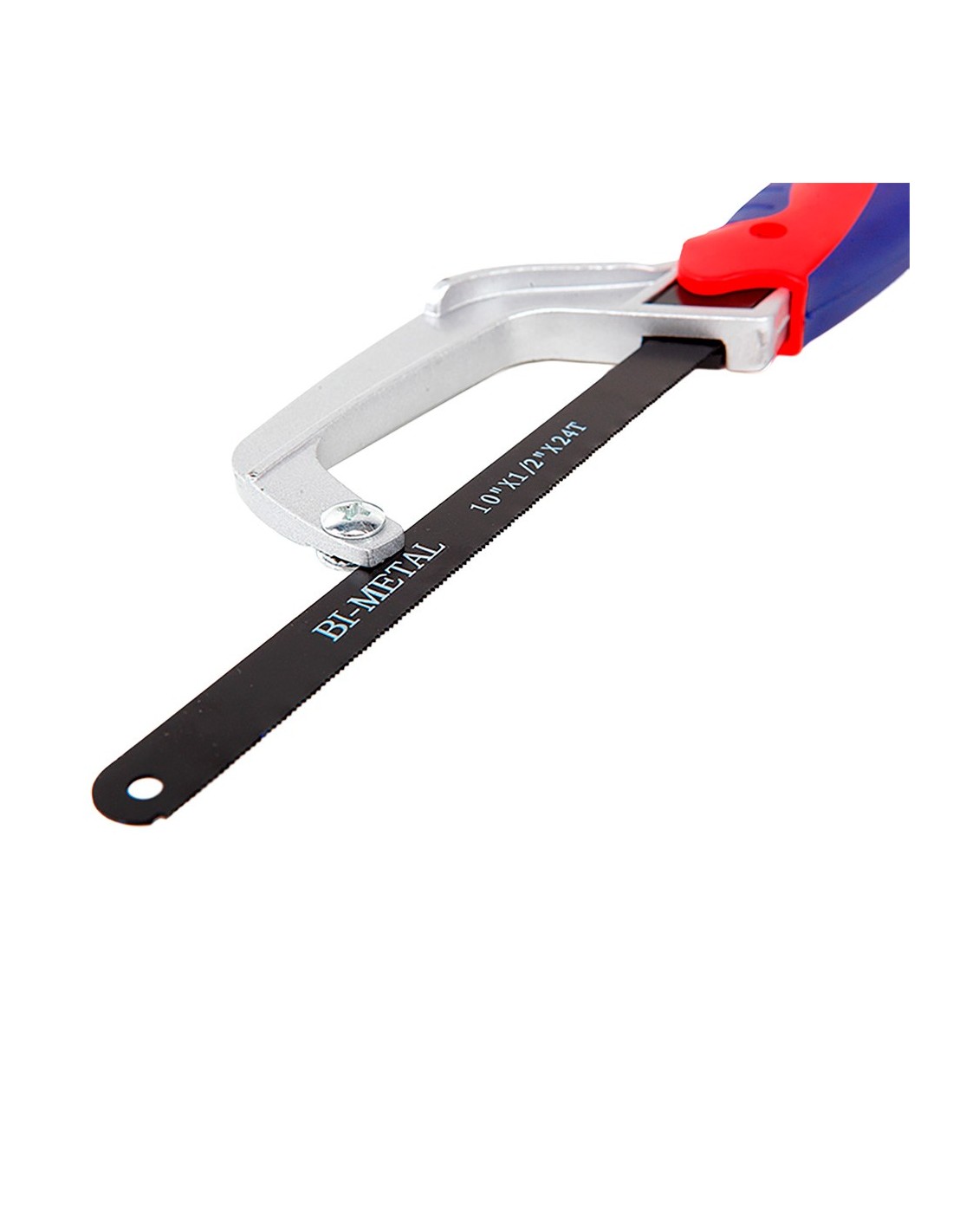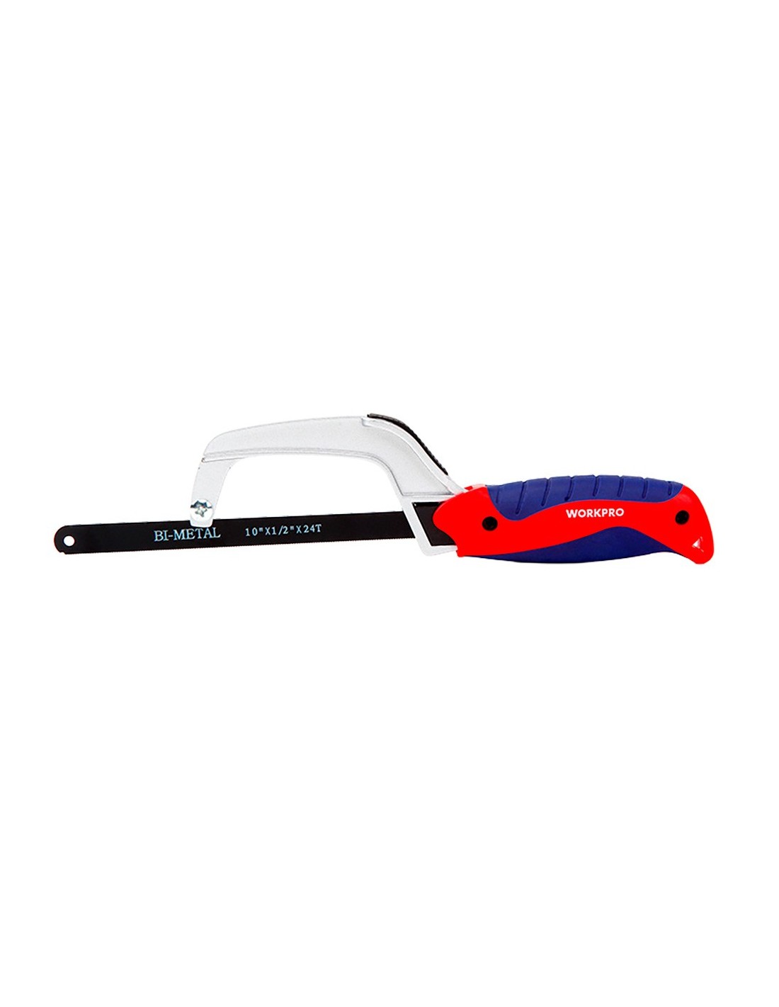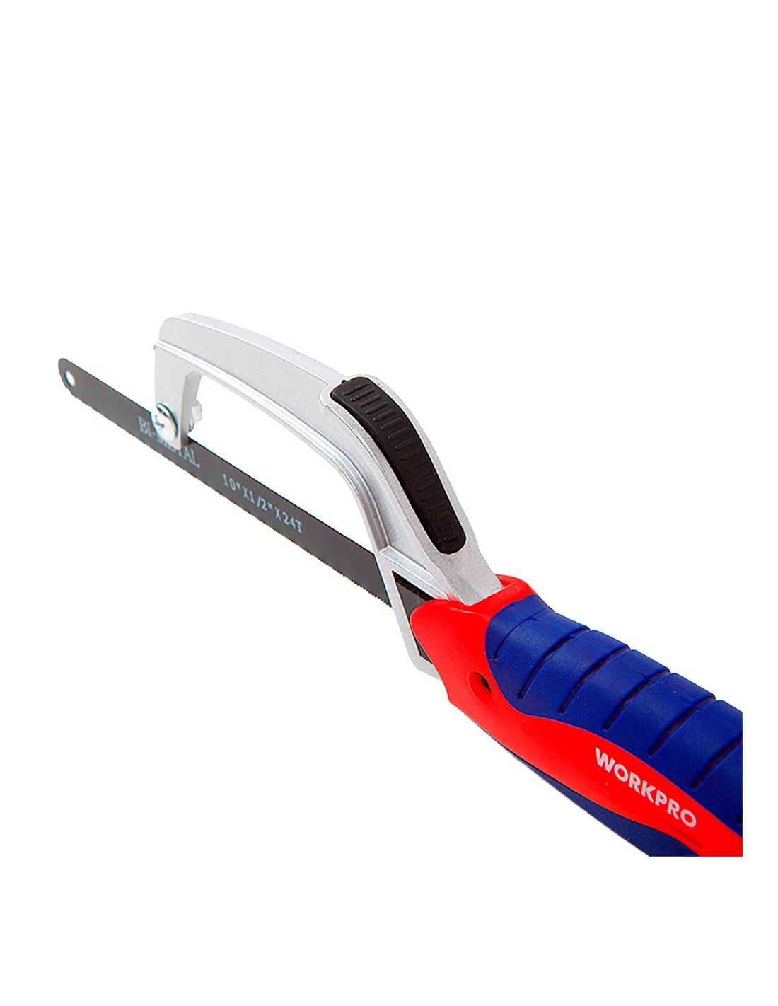 MINI SIERRA DE ARCO DE ALUMINIO, 250 mm; ESTRUCTURA DE ALEACIÓN DE ALUMINIO, MANGO ERGONÓMICO DE GOMA, PARA CORTES EN LUGARES DE DIFÍCIL ACCESO, HOJA BIMETÁLICA DE 250 mm, 24 TPI