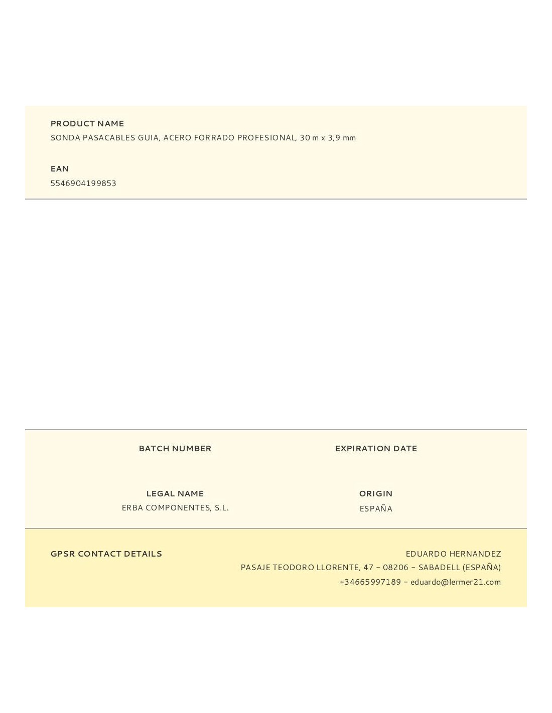 Sonda pasacables guía, acero forrado profesional, 30 m x 3,9 mm