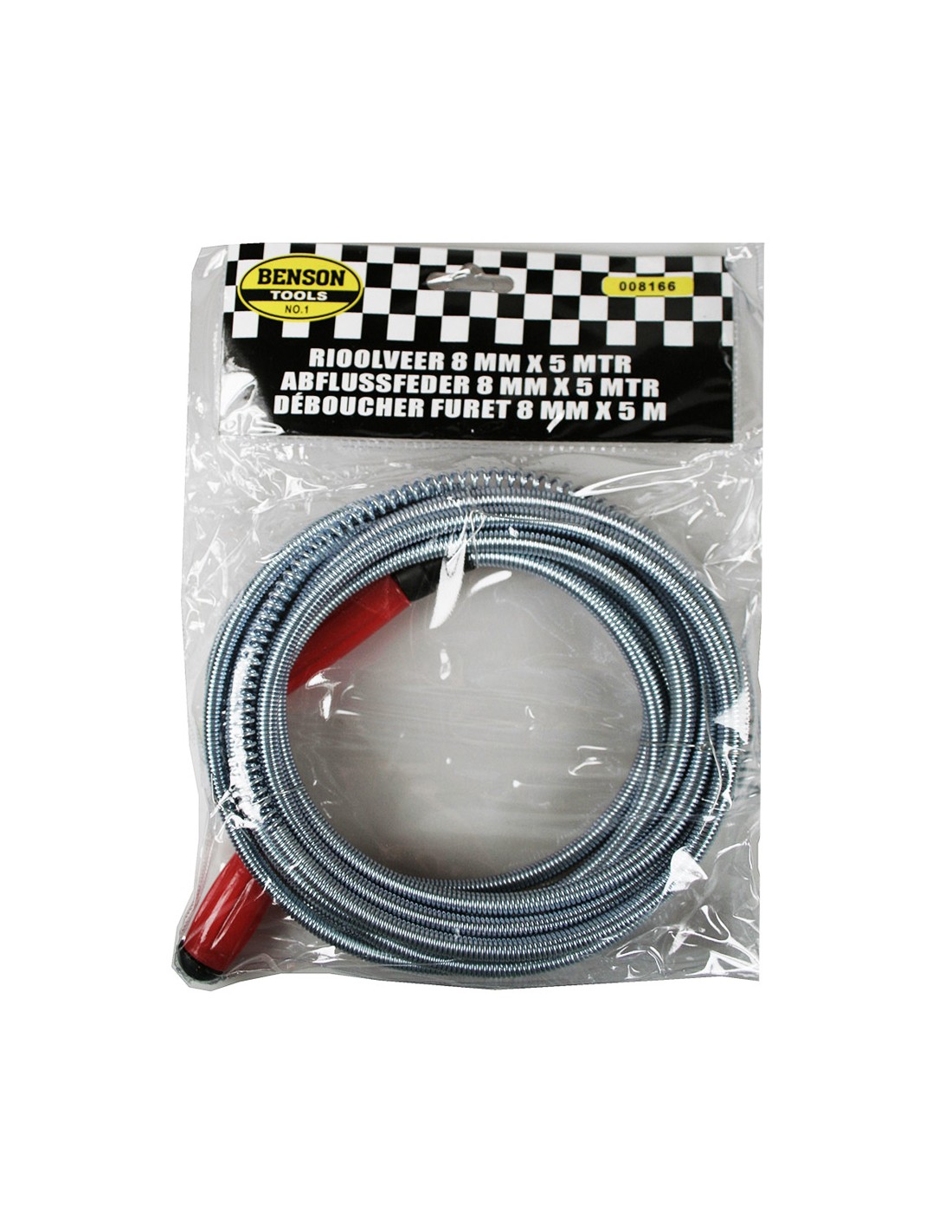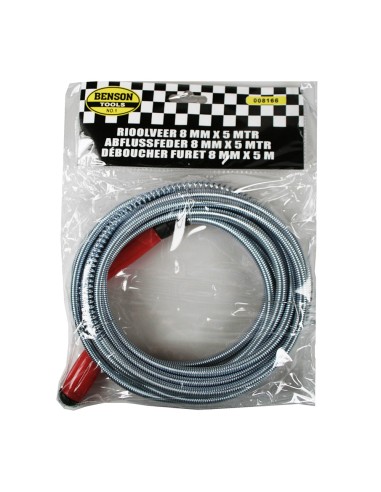 Desatascador de tuberias metalico flexible, 5 m x 8 mm