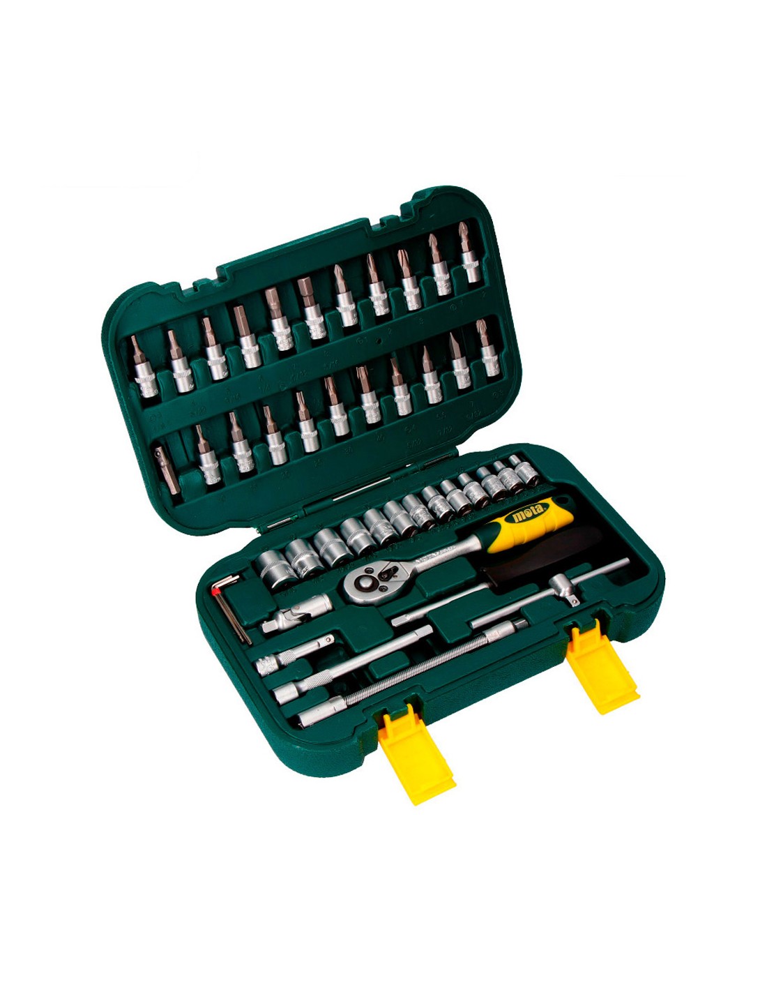 Juego 45 pcs de bocallaves y accesorios de 1/4" cromo vanadio ek402 mota.contiene: 13 bocas. hexagonales: 4, 4.5, 5, 5.5, 6, 7, 8, 9, 10, 11, 12, 13, 14 mm21 bocas. punta 6 torx ®: t10, t15, t20, t25, t30, t40 3 phillips: ph1, ph2, ph3 - 3 pozidriv: pz1, pz2, pz3 llaves hexagonales: 1.5, 2, 2.5 mm / 1 movimiento universal - 2 extensiones: (50 y 100 mm) 1 barra extensible - 1 llave t deslizable / 1 llave de carraca: 45 dientes 1 extensión con mango: 150 mm - 1 adaptador de punta