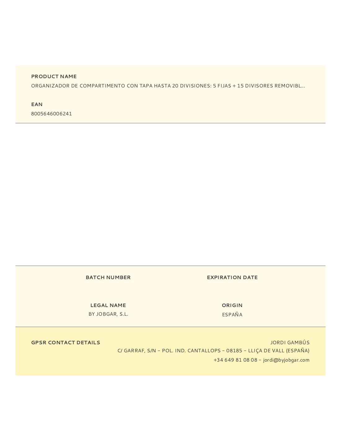 Organizador de compartimento con tapa hasta 20 divisiones: 5 fijas + 15 divisores removibles 51 x 33 x 6 cm
