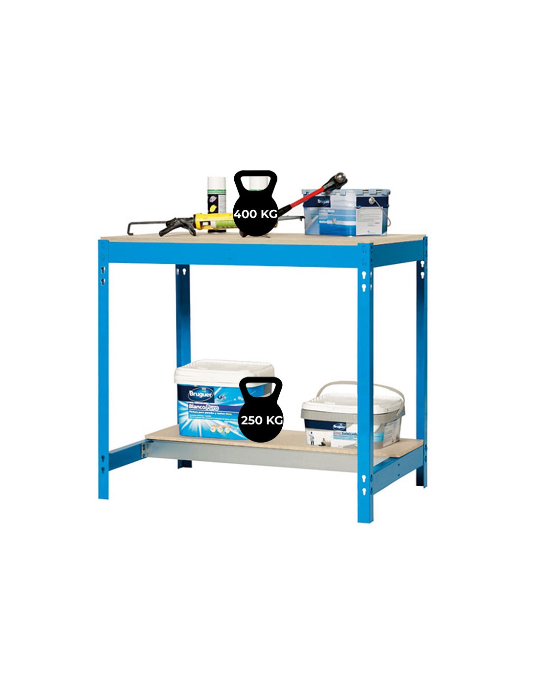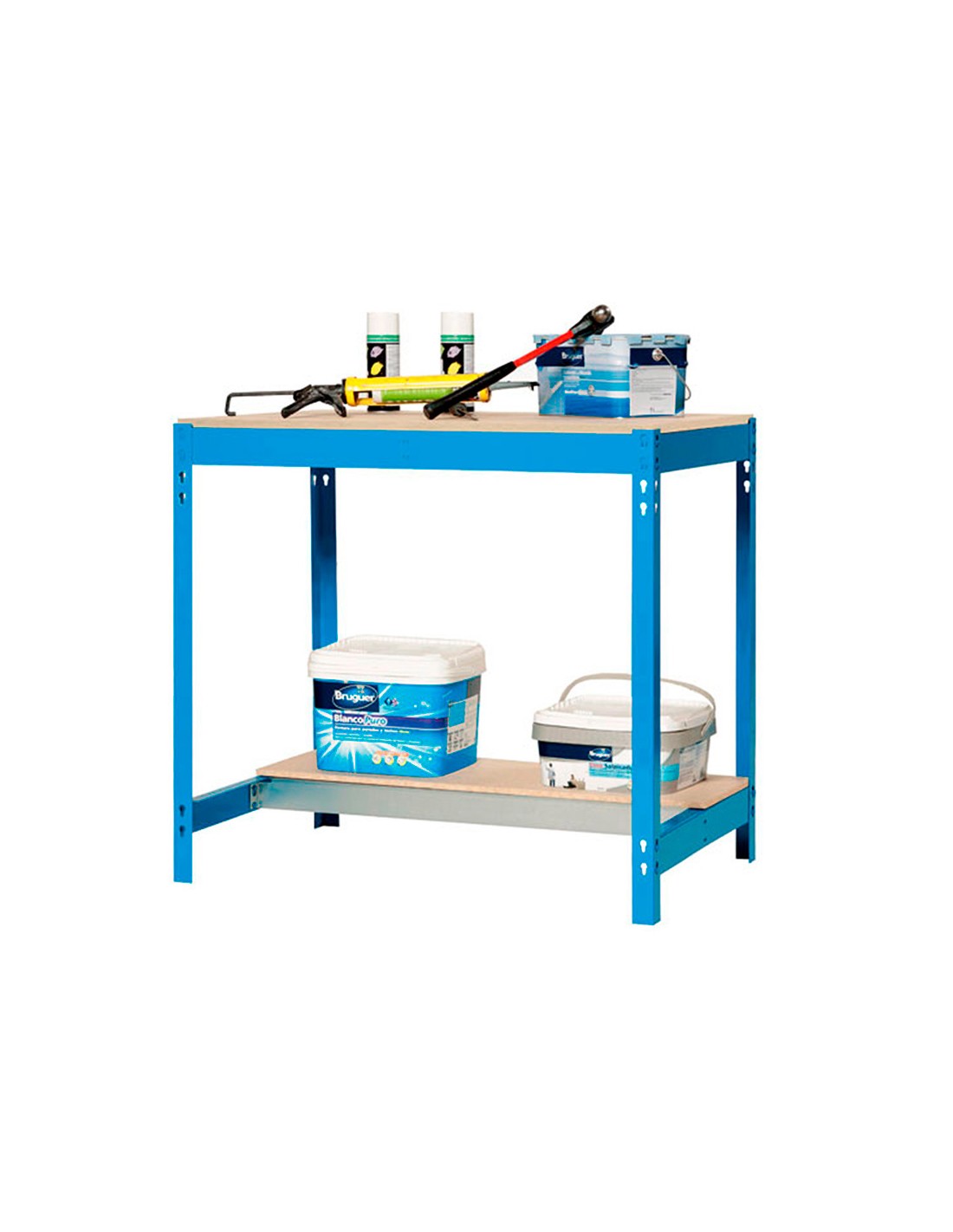 Bancodetrabajometálicodecolorazul/maderaconcapacidaddecargade400kg.productoespañol,calidadeuropea,medidasenusodelproducto:842 x 910 x 610mm