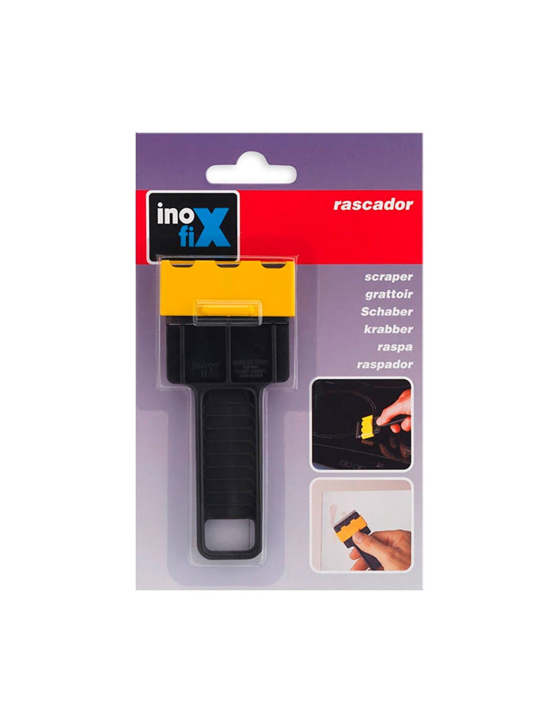 Rascador de vidrios con tapa de protección, cuchilla incluida, dimensiones 5 x 1 x 11 cm