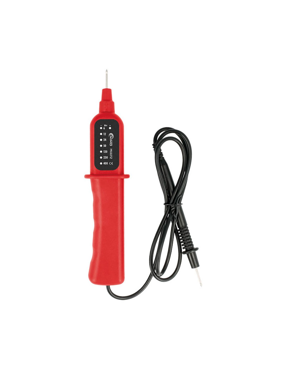 Comprobador de tensión con indicador por led, vca/vcc nimo. rango de tensión: 6v-12v-24v-50v-120v-230v-400v ca/vcc. frecuencia 0 a 60hz.