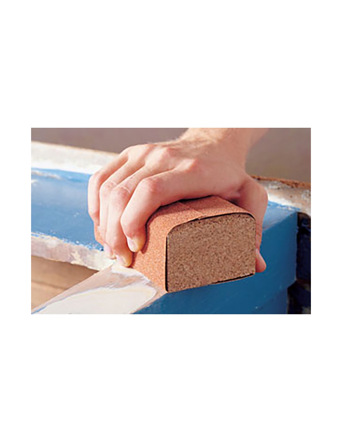 Taco de lijar manual, de corcho antideslizante. ideal para trabajar con papeles de lija de diferentes medidas. lijado sencillo de bordes y superficies. dimensiones: 67 x 123 x 35 mm