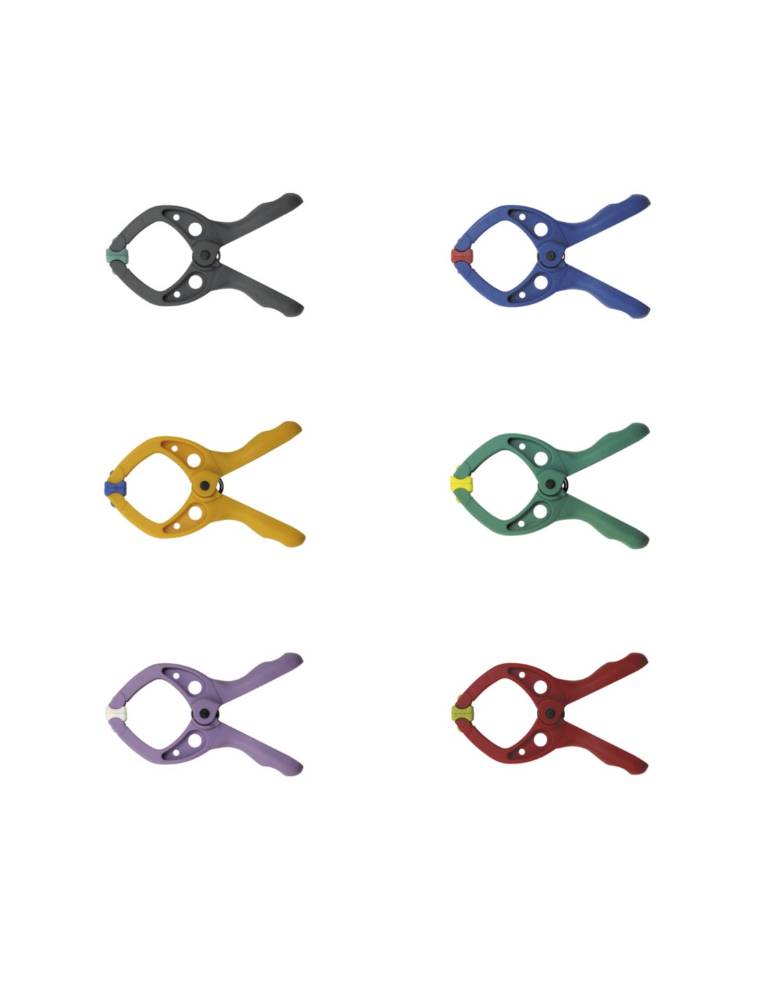 Mini-pinza con resorte microfix, ancho de sujeción 20 mm. de aplicación universal, especialmente adecuada para la fabricación de maquetas. para un agarre, fijación y sujeción precisos de objetos delicados. adaptación óptima a la pieza mediante las mordazas móviles. colores surtidos