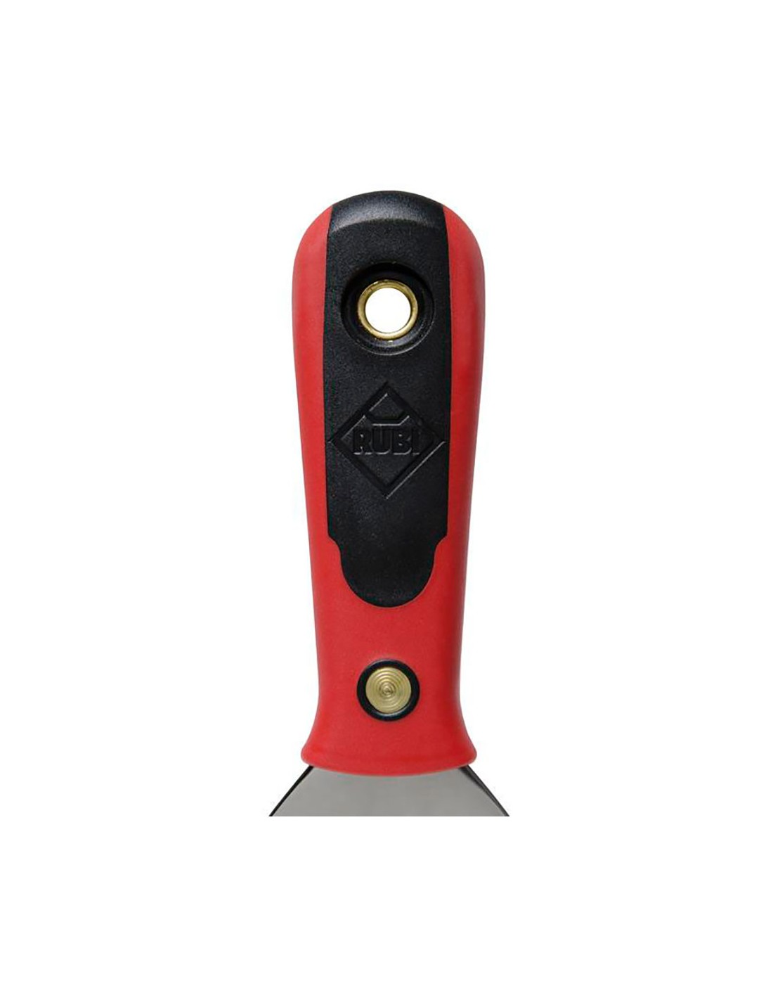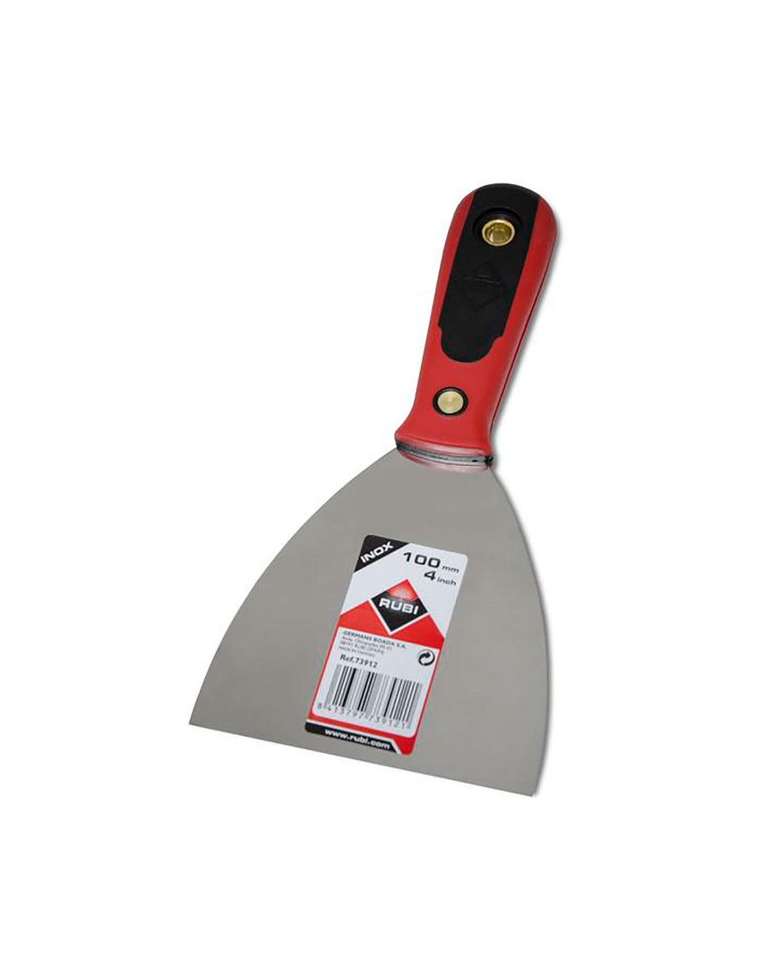 Espátula inox 100mm 73912 rubi. las espátulas de pintor son utilizadas tanto por pintores, como yeseros y albañiles en general.la lámina de acero inoxidable de las espátulas de pintor con mango bimaterial rubiflex de rubi asegura la máxima resistencia y una buena flexibilidad, así como la resistencia a la oxidación. su uso principal es la aplicación y alisado de pastas y masillas, pero gracias a la alta resistencia al desgaste de la lámina de acero inoxidable, también se pueden utilizar para rascar y eliminar restos de otros materiales, como papel pintado, moquetas, adhesivos, etc. la lámina de acero inoxidable ocupa toda la espátula, insentándose en el mango bimaterial rubiflex, quedando fijada por un remache, lo que garantiza la durabilidad de la herramienta. el mango bimaterial rubiflex aporta un mucho grip y confort durante el uso de la espátula. espátula de 100mm de anchura en la parte inferior.