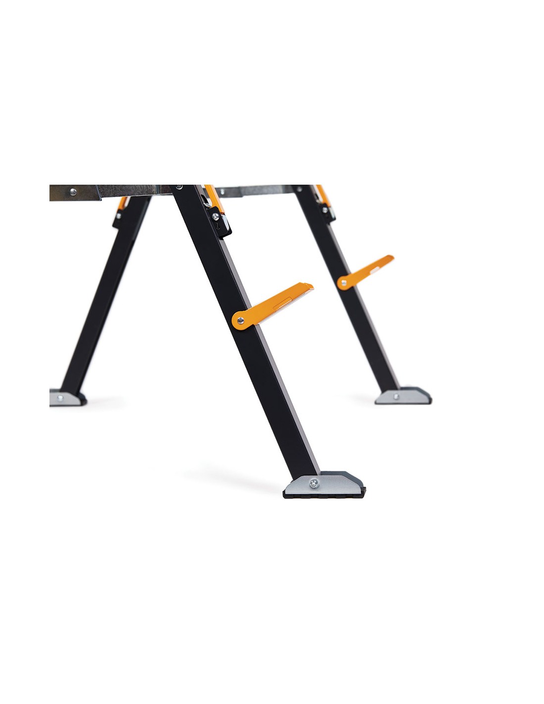 Caballete/mesa de trabajo c700, 2 uds. construcción 100% de acero,mesa de trabajo. los brazos de soporte se ajustan a diferentes tamaños de madera,capacidad de 589kg cada uno, 1,178kg por par. patas de altura ajustable, clavijas de corte y soporte del material, pies pivotantes,superficies recubiertas de pintura en polvo y zincadas,asa de transporte fácil