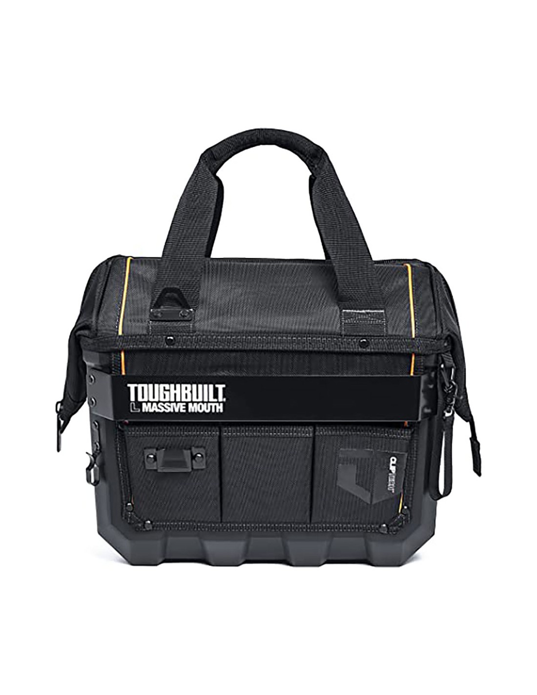 Bolsa cuerpo duro massive mouth l 400 mm/16". profesional. bolsas con clip: compatibles con las bolsas patentadas cliptech. incluye el centro cliptech. las paredes divisorias internas y los bolsillos externos estructurados se flexionan para mantener las herramientas en su sitio de forma segura. construcción de cuerpo duro con paneles de bolsillo remachados para una protección y durabilidad extremas. asas acolchadas. base robusta e impermeable. barra cliptech® de acero resistente que sujeta las bolsas toughbuilt. (las bolsas se compran por separado)