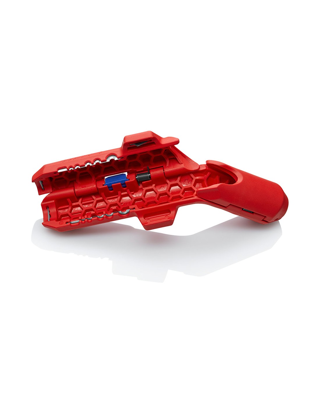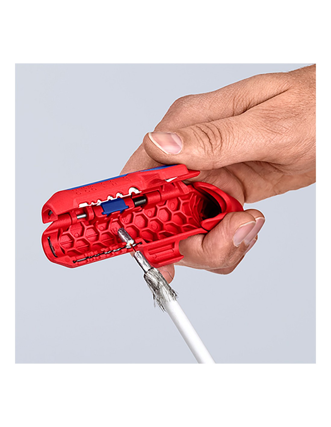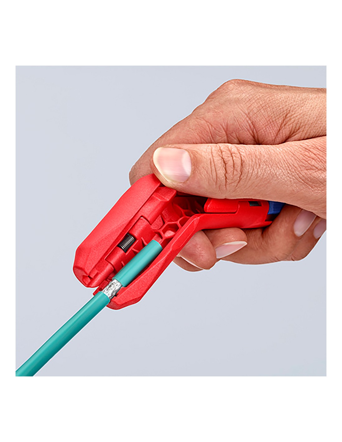 Pelamangueras universal ergostrip 169501sb knipex. knipex ergostrip®, pelacables universal herramienta universal para pelar todo tipo de cables convencionales nym así como para cables de datos y coaxiales ideal para electricistas, montadores de instalaciones industriales e instaladores. 75g. dimensiones: 135x85x37mm. producto premiado y también para personas zurdas: knipex ergostrip® y knipex ergostrip® l.cables nym de 3x1,5mm hasta 5x2,5mm), cables de datos (ej: twisted-pair) y cables coaxiales. extremos de la herramienta con forma cónica para un mejor acceso en espacios reducido. dispositivo de pelado para las secciones 0,2/0,3/0,8/1,5/2,5/4mm. sencilla colocación de cables unitarios al pelar mediante zonas de posicionamient. carcasa de plástico estable reforzada con fibra de vidrio.