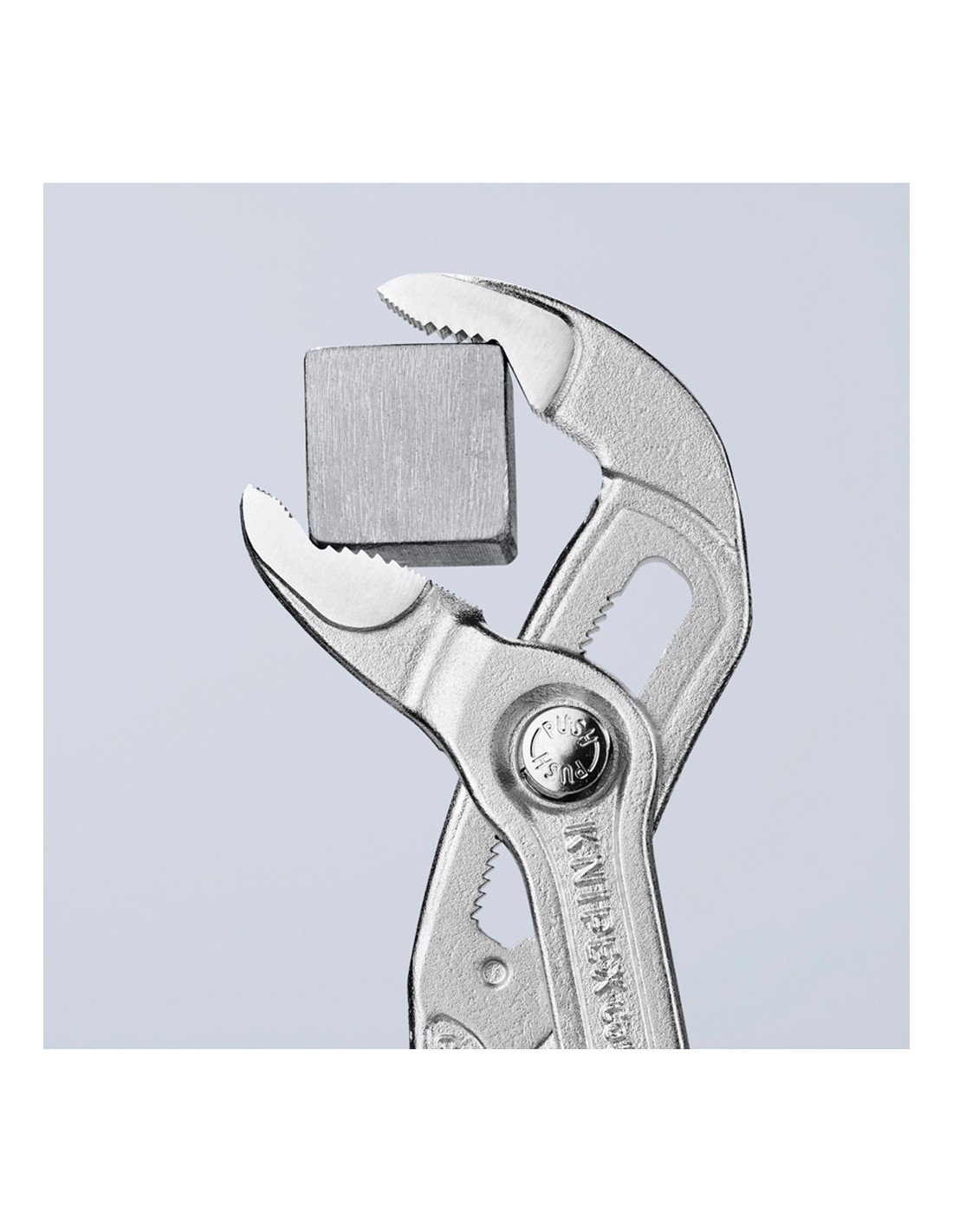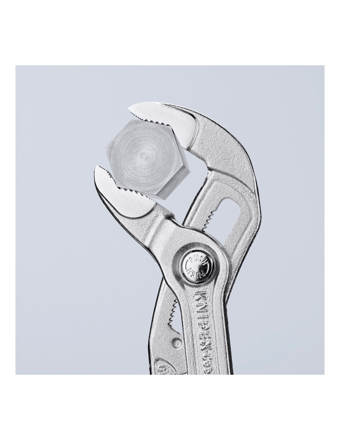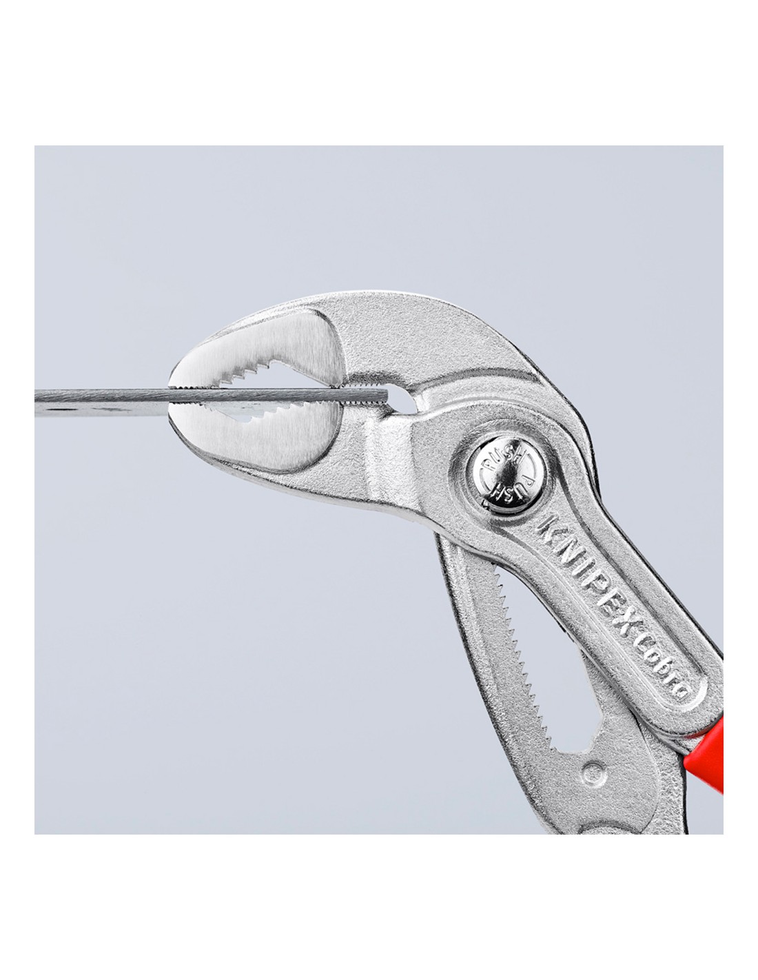 Tenazas ajustables cobra vde 8726250 knipex. knipex cobra® vde, tenazas para bombas de agua din iso 8976, din en 60900, iec 60900 ajuste deslizando la boca directamente hacia la pieza de trabajo: manejo rápido, seguro y confortable alicate cromado, mangos aislados con fundas multicomponentes, según norma vde. 340g. dimensiones: 250x71x30mm. ajuste deslizando la boca directamente hacia la pieza de trabajo: manejo rápido, seguro y confortable, ajuste preciso: permite la adaptación óptima a distintos tamaños de piezas y una posición ergonómica del mango. fácil acceso a la pieza gracias al diseño esbelto en la zona de la cabeza y la articulación. auto-retención en tuberías y tuercas, agarre perfecto a la pieza con el mínimo esfuerzo. mordazas con dientes adicionalmente templados, dureza aprox. de los dientes 61 hrc: poco desgaste y gran seguridad en el agarre. articulación machihembrada: gran estabilidad por la doble guía un retén protector evita lesiones por pellizcos. acero eléctrico al cromo vanadio, forjado, templado al aceite en varias etapas.