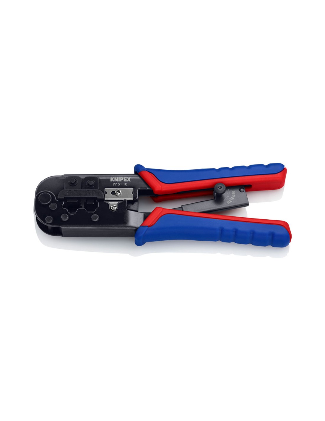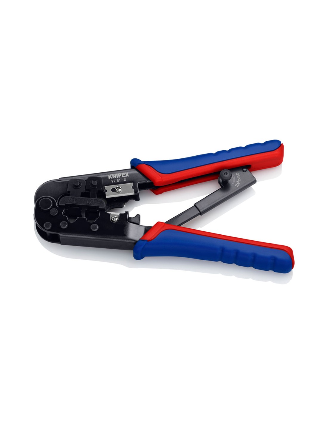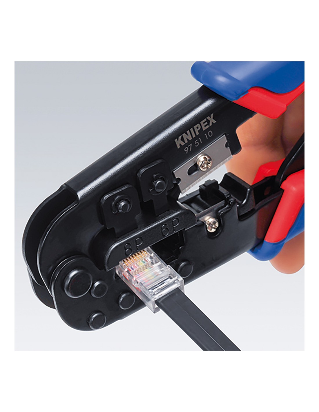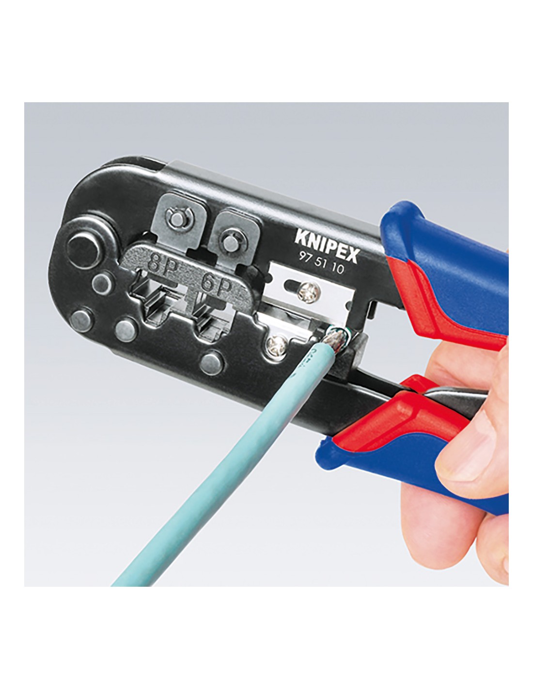 Alicate para crimpar conectores western proceso de crimpado de gran exactitud, gracias al avance paralelo de las mordazas con sistema de bloqueo con dispositivo adicional para pelar cables redondos. alicate bruñido, mangos con fundas multicomponentes. 340g. dimensiones: 190x70x18mm. herramienta profesional para cortar y pelar la cubierta de cables telefónicos planos sin blindaje.para crimpar conectores western de 6 y 8 polos tipo rj 11/12 (ancho 9,65mm) y rj 45 (ancho 11,68mm) diseño largo. proceso de crimpado preciso gracias al crimpado en paralelo. de gran calidad gracias al sistema de bloqueo con mecanismo de liberación automática. con guillotina y cuchilla pelacables para cables planos de 6 y 12mm de longitud. con dispositivo adicional para pelar cables redondos. acero eléctrico al cromo vanadio de calidad especial, templado al aceite