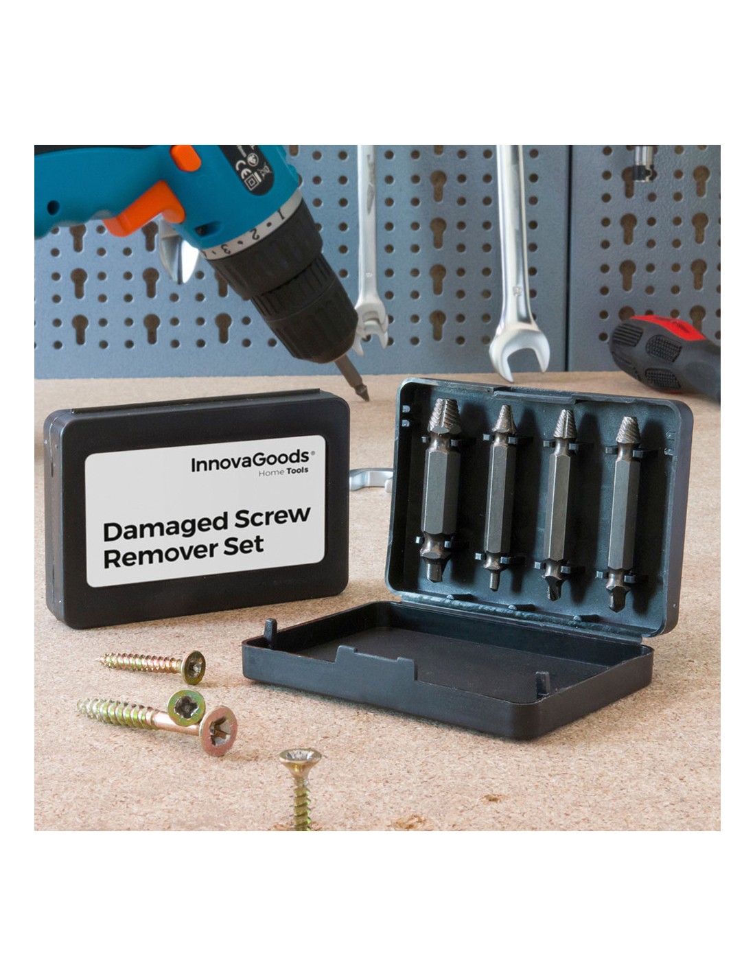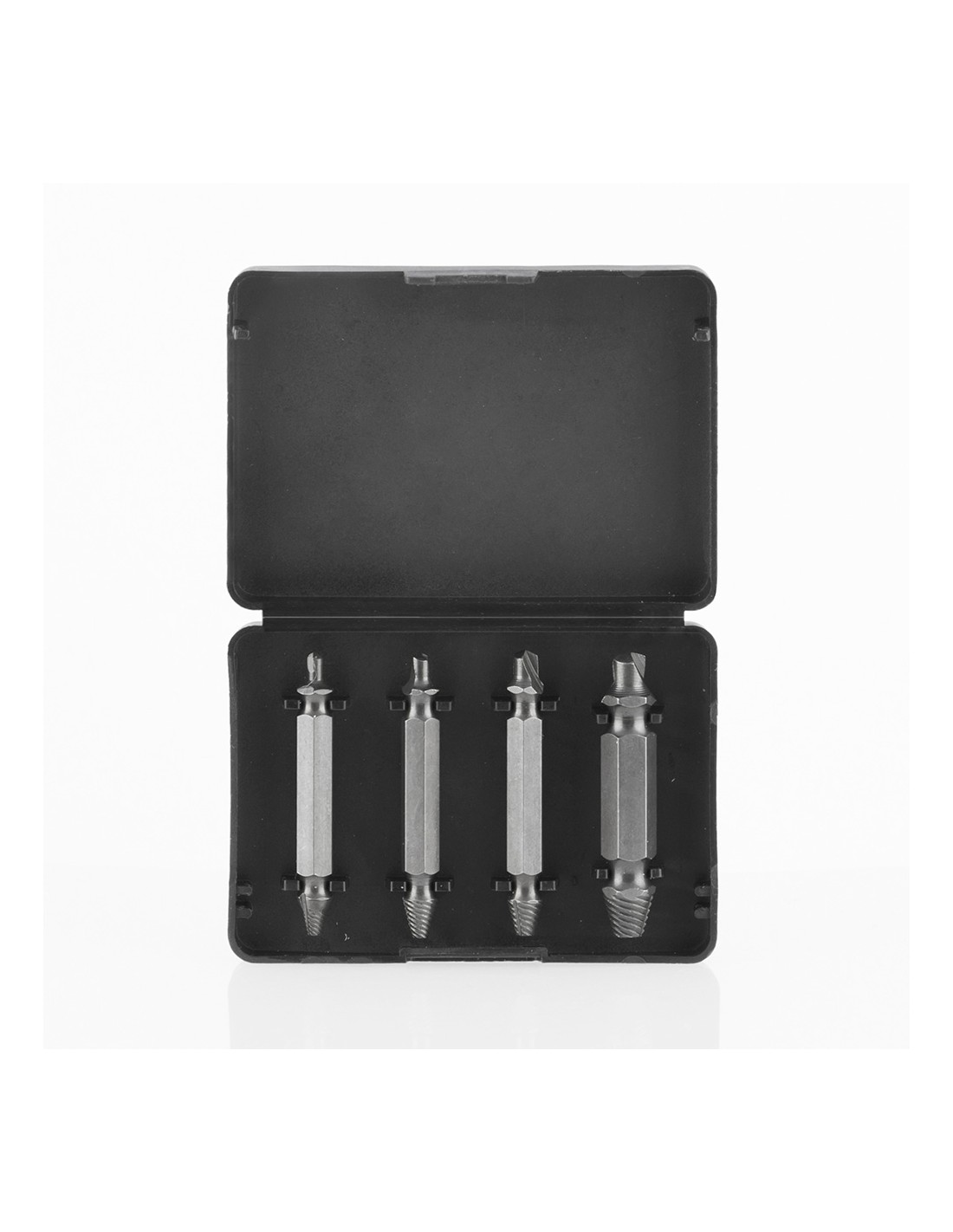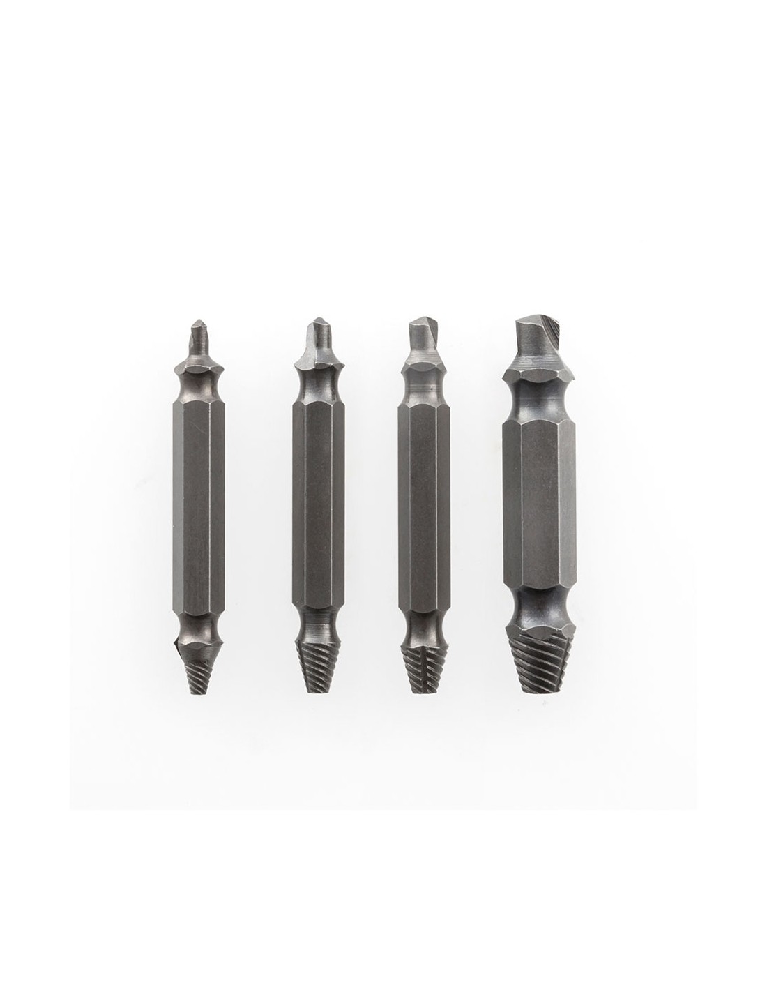 Pack 4 brocas para extraer tornillos dañados o/y oxidados con facilidad y rapidez. cada broca de doble acción perfora la cabeza de los tornillos para luego extraerlos sin esfuerzo. fabricado de acero templado endurecido (60 hrc), alta resistencia y dureza, apto para cualquier taladro, longitud aprox. de las brocas: 5 cm, incluye estuche (aprox. 8,6x1,5x6cm),4 brocas de acero para:tornillos: 4-7/pernos: 5mm, tornillos: 8-10/pernos: 6mm, tornillos: 11-14/pernos: 8mm, tornillos: 16-24/pernos: 10mm