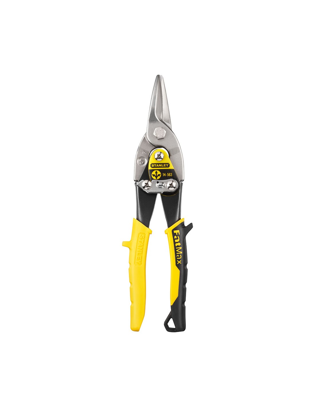 Tijeras corta chapas corte recto fatmax®. gran efecto de palanca. acción de corte combinada. filos serrados para evitar el deslizamiento en el corte. capacidad de corte de hasta 1,2 mm. válido para el corte de aluminio, láminas de pvc, mallas de acero, piel, cobre y plástico. tuercas cromadas. aleación de acero forjado (cromo-molybdeno)