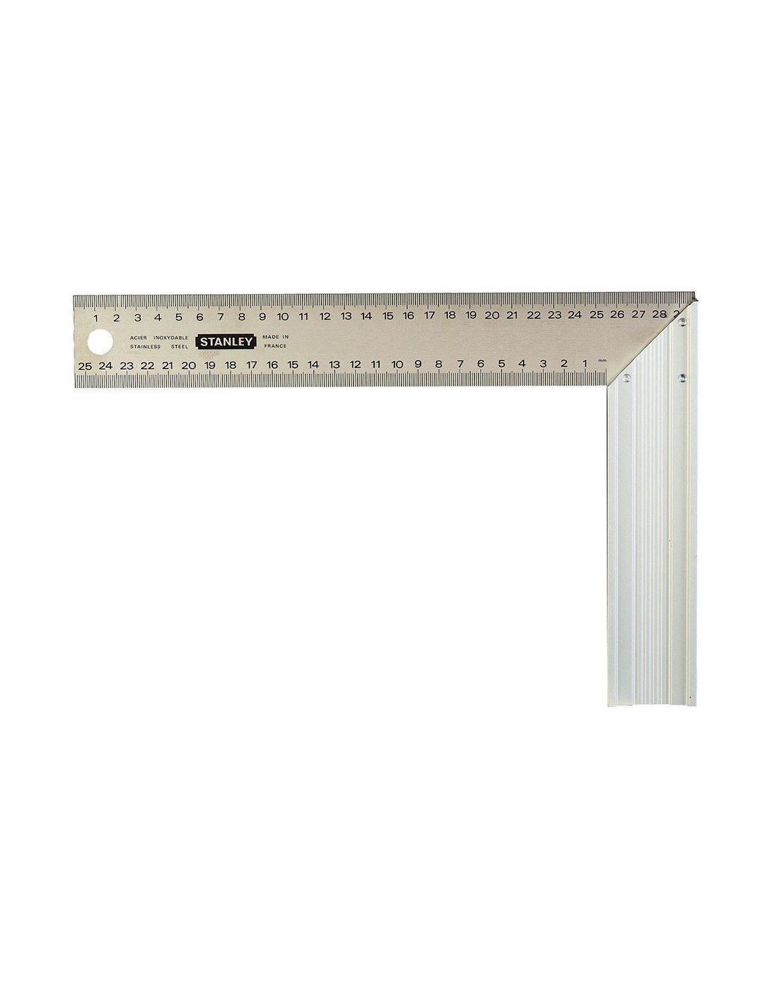 Escuadra de carpintero 200x300mm. escuadra angular (45°). talón de perfil de aluminio. lámina de acero inoxidable grabada (procedimiento gravemat) graduación en mm en ambos lados. stock biselado para que establezca tanto el 90 y 45 ángulos. aluminio extruido que está triplemente remachado a la hoja para conseguir fuerza y precisión. foto de alta visibilidad grabado hoja de acero inoxidable graduada grabada con hueco profundo (procedimiento gravemat)