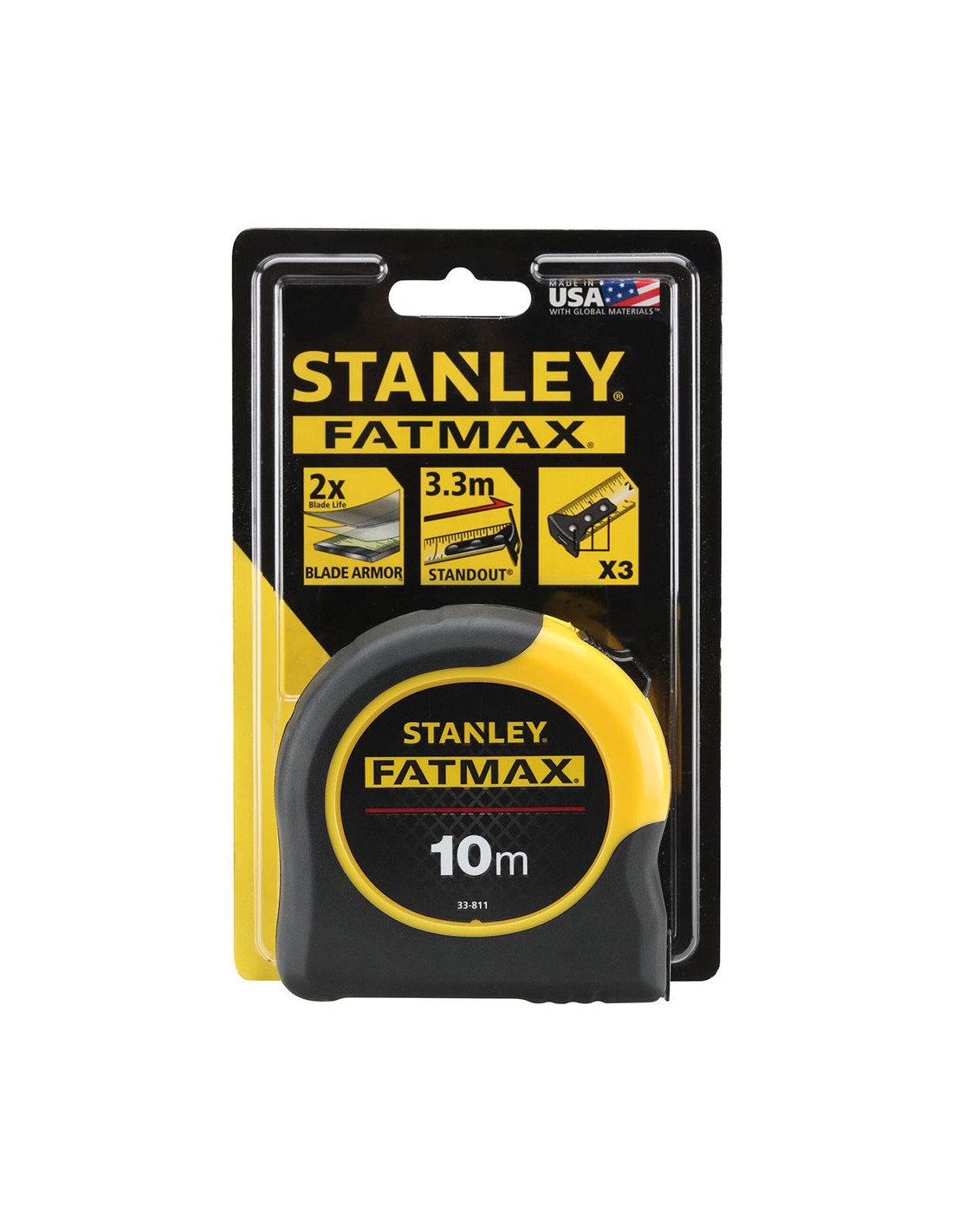 Flexómetro 10m x 32mm blade armor. flexómetro de hoja extra ancha con revestimiento mylar®. gancho de 3 remaches y amortiguador del retroceso de la hoja que evita la rotura del gancho. caja bimateria antideslizante revestida con elastómero. clip de sujeción al cinturón. aguanta sin doblarse 3,3m. revestimiento blade armor en los 8 primeros centímetros. stanley