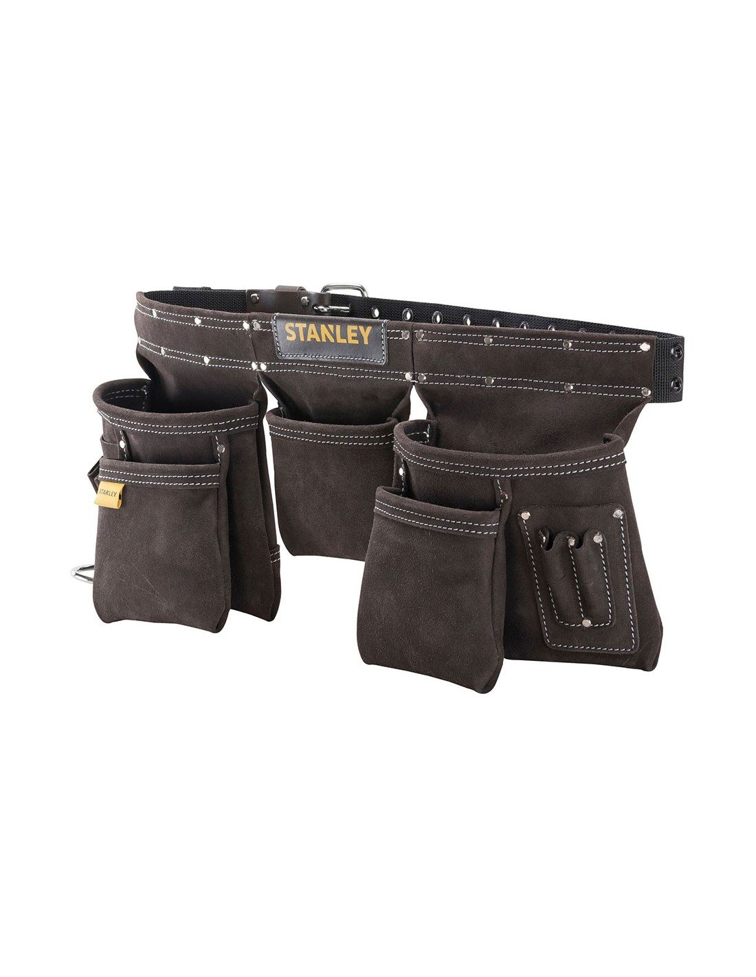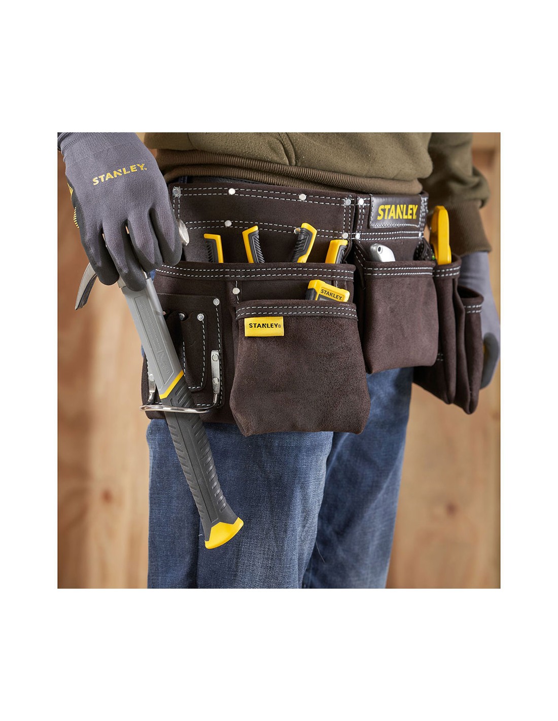 Delantal de herramientas fabricado con piel de búfalo flexible y duradera. nueva configuración de bolsillos de fácil acceso. múltiples bolsillos y soportes para un acceso rápido. abertura amplia para el cinturón. muy duraderas reforzadas con remaches. cosido doble para mayor durabilidad. piel suave con tacto más fino. gancho para martillo integrado. cómodo acceso al martillo y herramientashebilla metálica para mayor durabilidad. cinturón integrado
