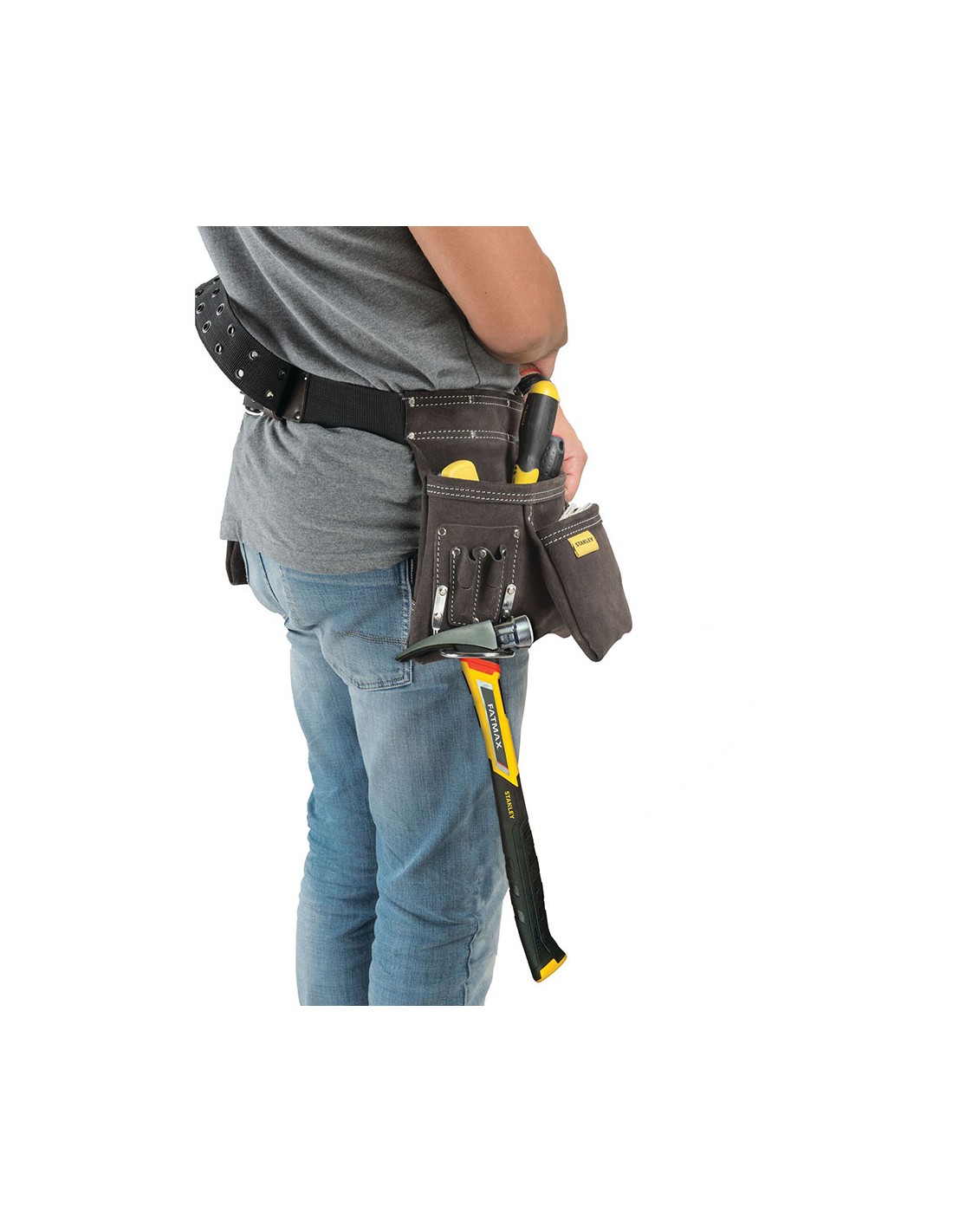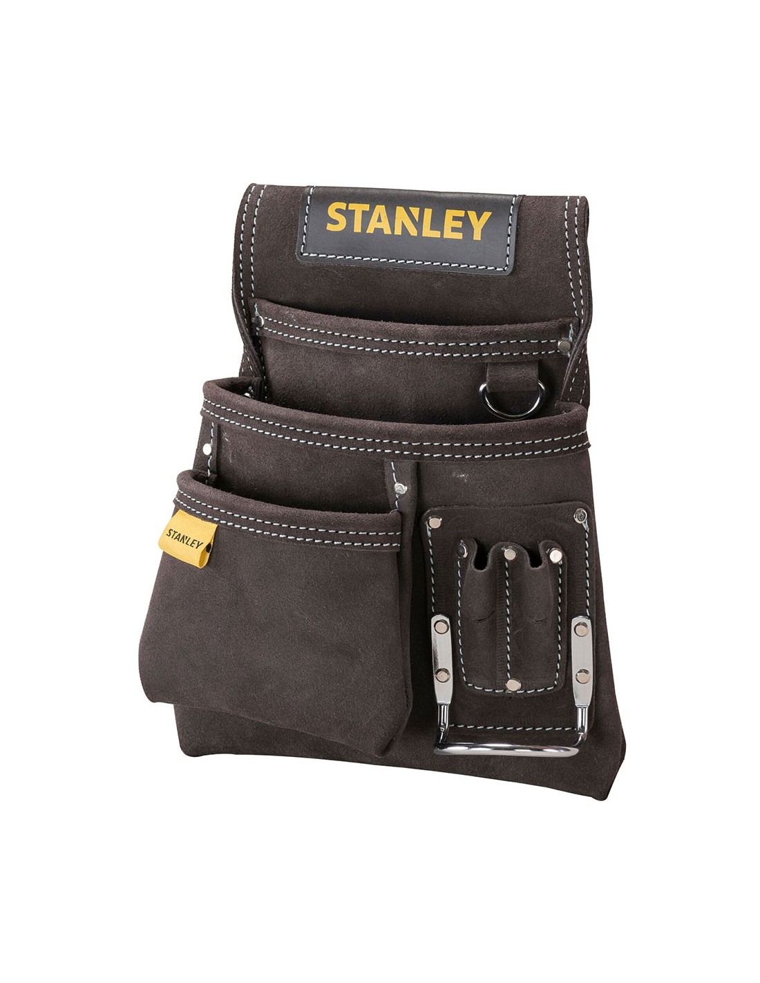 Bolsa para clavos con soporte para martillo. fabricada con piel de búfalo flexible y duradera. nueva configuración de bolsillos de fácil acceso. múltiples bolsillos y soportes para un acceso rápido. abertura amplia para el cinturón. muy duraderas reforzadas con remaches. cosido doble para mayor durabilidad. piel suave con tacto más fino. gancho para martillo integrado. cómodo acceso al martillo y herramientas