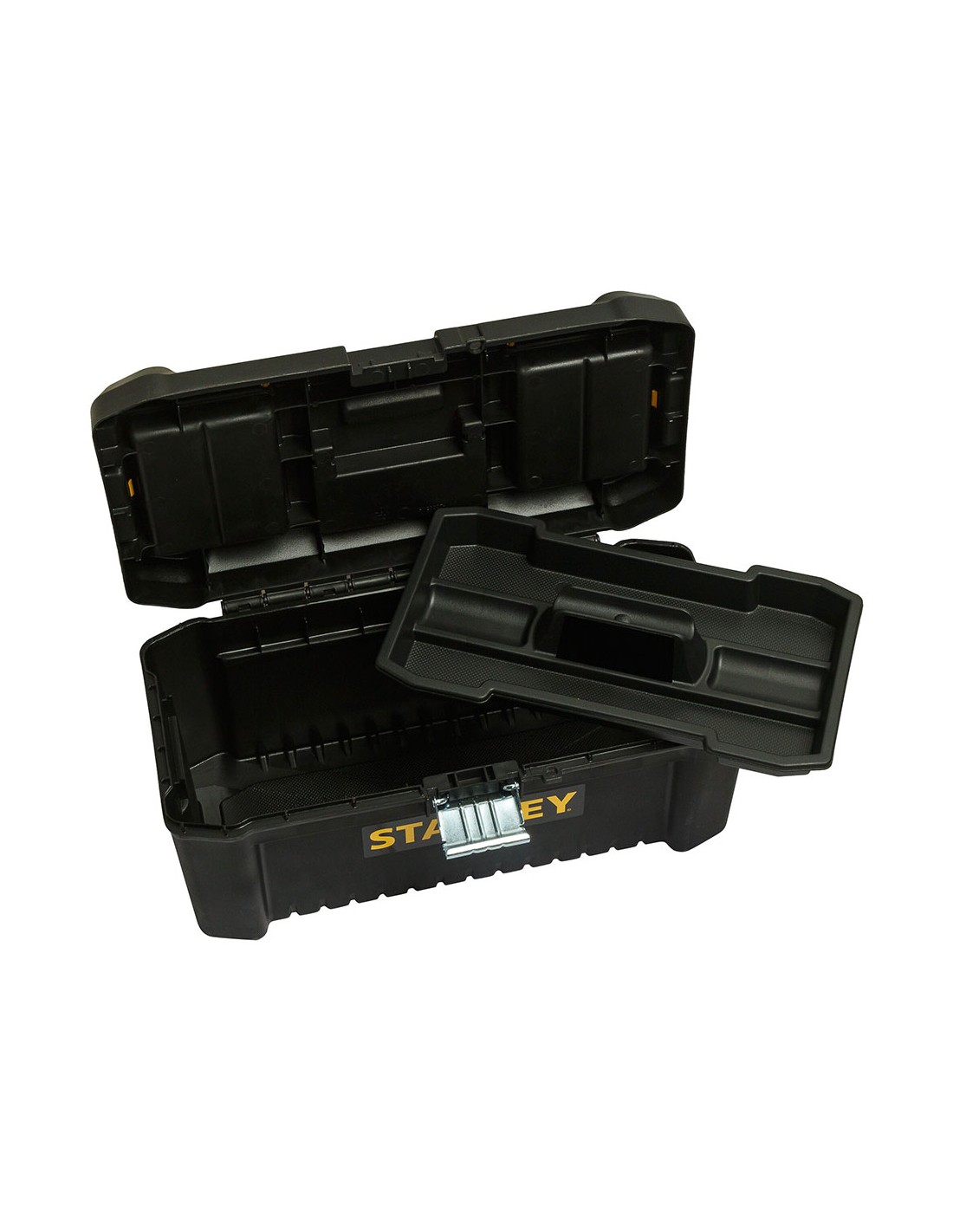 Caja de herramientas de plástico 16" / 40 cm con cierre metálicos. asa ergonómica. organizadores integrados en la tapa. bandeja interior extraíble. orificio para candado
