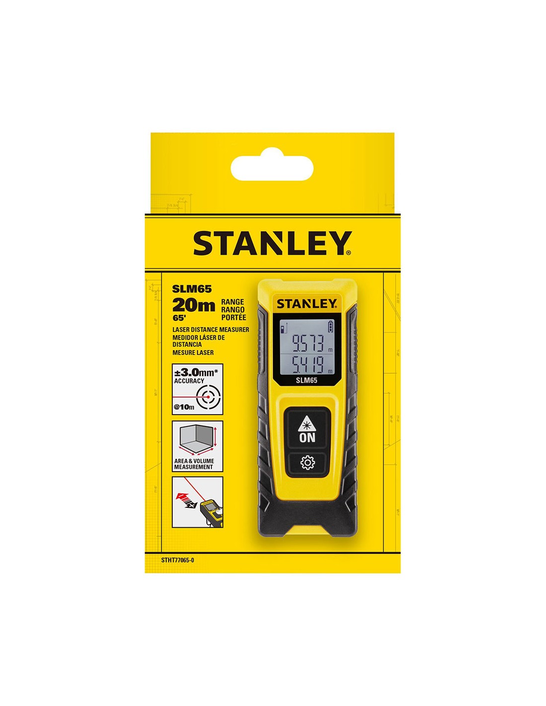 Medidor láser 20m slm65. gracias a su gran alcance, el medidor de distancia láser stanley® slm65, 20m es adecuado para una amplia gama de aplicaciones de medición profesionales. este medidor de distancia láser, fácil de usar, ha sido diseñado con características prácticas como el funcionamiento con dos botones: uno para activar el dispositivo y realizar las mediciones, y el otro botón para seleccionar diferentes funciones. con una pantalla lcd gris con dígitos negros, el slm65 es fácil de leer, especialmente en condiciones de luminosidad. el sistema de medición a dos alturas facilita las mediciones desde la parte superior o la base de la unidad, proporcionando precisión y flexibilidad en una multitud de escenarios de medición. robusto, fiable y duradero, el medidor de distancia láser stanley® slm65, 20m ha sido sometido a una prueba de caída de 1m para garantizar que resiste golpes y caídas, para que todo profesional se sienta seguro al utilizarlo en el lugar de trabajo. este versátil medidor está equipado con una pantalla de gran tamaño que muestra dos filas de mediciones, y un modo de ahorro de energía que protegerá la vida de la batería apagando automáticamente el láser después de 120 segundos y la pantalla después de 180 segundos. stanley