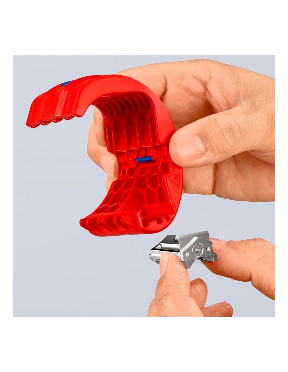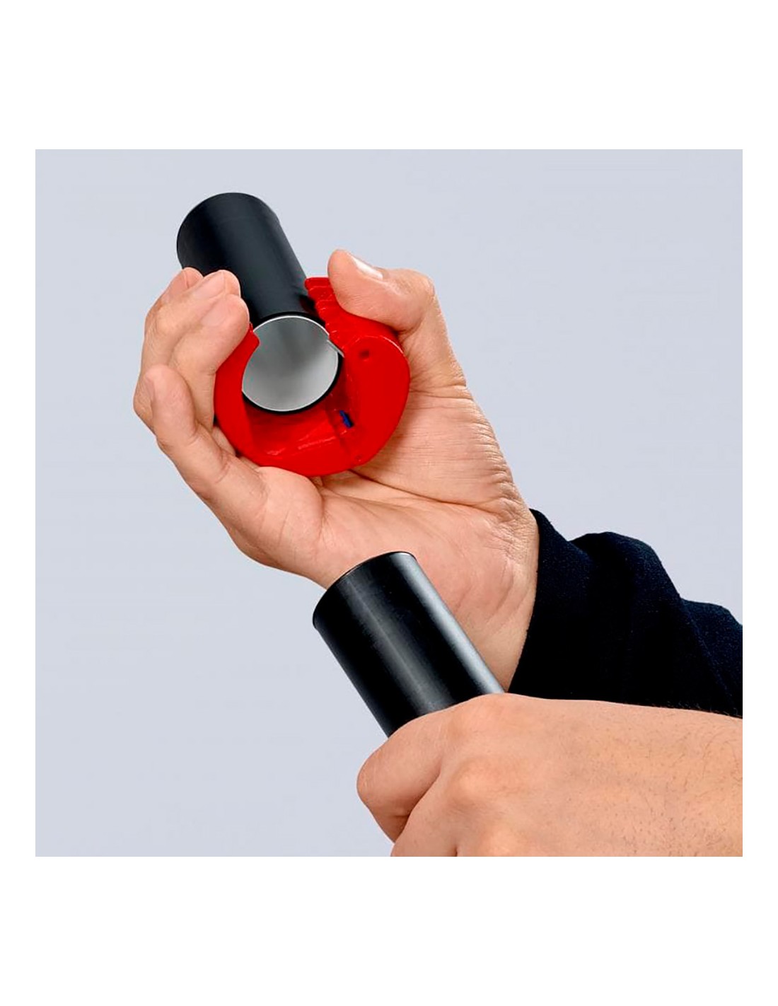 Cortatubos bix® para tubos de plástico y manguitos de sellado 902210b knipex. corta tubos de plástico sin reforzar de 20 a 50mm de diámetro con un espesor de hasta 2,4mm. corta tubos rápida y limpiamente sin rebabas. corta manguitos de sellado a 2 o 3mm de la pared. con cuchilla giratoria para cortar tubos de plástico (cuchilla en el centro) o manguitos de sellado (cuchilla en el exterior). con mecanismo de bloqueo para un transporte seguro.la herramienta contiene dos cuchillas de recambio. herramienta fabricada en estable plástico reforzado, cuchilla de zinc fundido a presióncuchillas de acero inoxidable especial. fabricadas en solingen