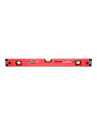 Rubilevel 60cm .fabricado en perfil de aluminio de sección rectangular degran ligereza, pero sin renunciar a la resistencia, gracias a los nervios longitudinales que aportan una mayor refuerzo estructural. la base está mecanizada para garantizar una precisión constante de 0,5mm/m. sus tres viales acrílicos, sellados con resina epoxi, ofrecen una alta resistencia a los impactos, a la vez que a los efectos negativos de los rayos uv. también permiten comprobaciones y verificaciones de niveles horizontales, verticales y en pendientes de 45°.