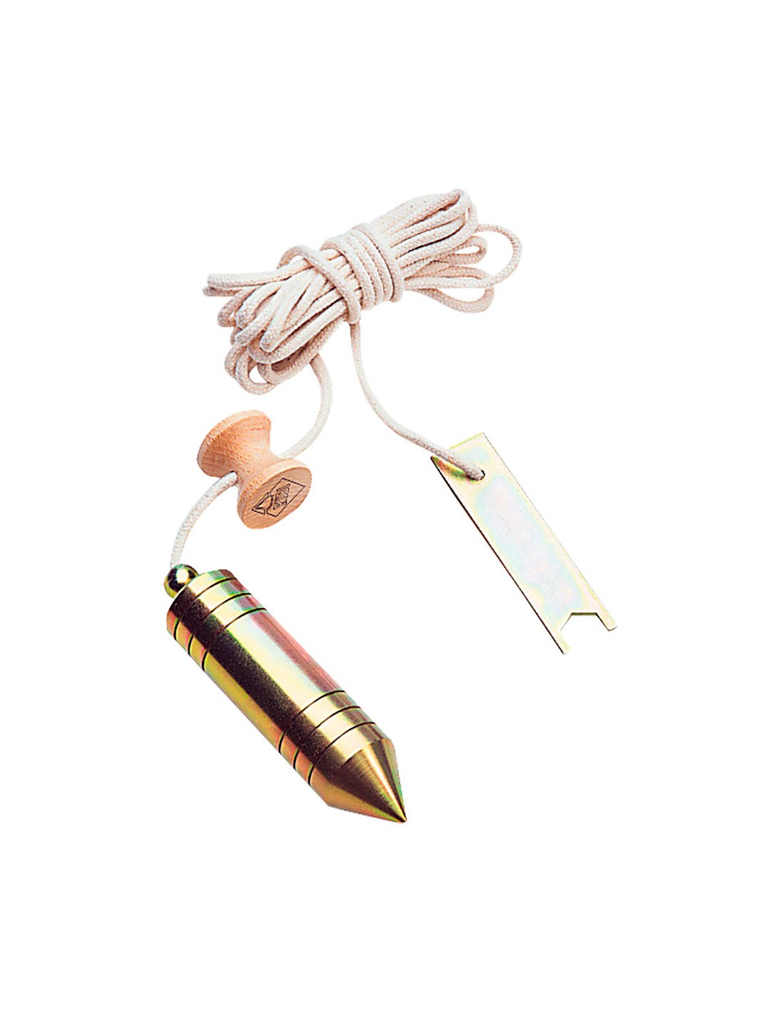 Plomada 600g. fabricada en acero bicromatado, para asegurar una buena resistencia a la corrosión, debido a las condiciones de trabajo a las que el producto será sometido. la geometría mantiene uno de los modelos más tradicionales: el cilíndrico, con un extremo en punta, como indicador del centro de gravedad. altamente fiables y muy resistentes. los diábolos, o nueces, se fabrican en madera y están barnizadas para darles una mayor resistencia a los trabajos en condiciones adversas. la cuerda es de algodón de alta calidad, para soportar las condiciones de trabajo en la obra, de 5m de longitud