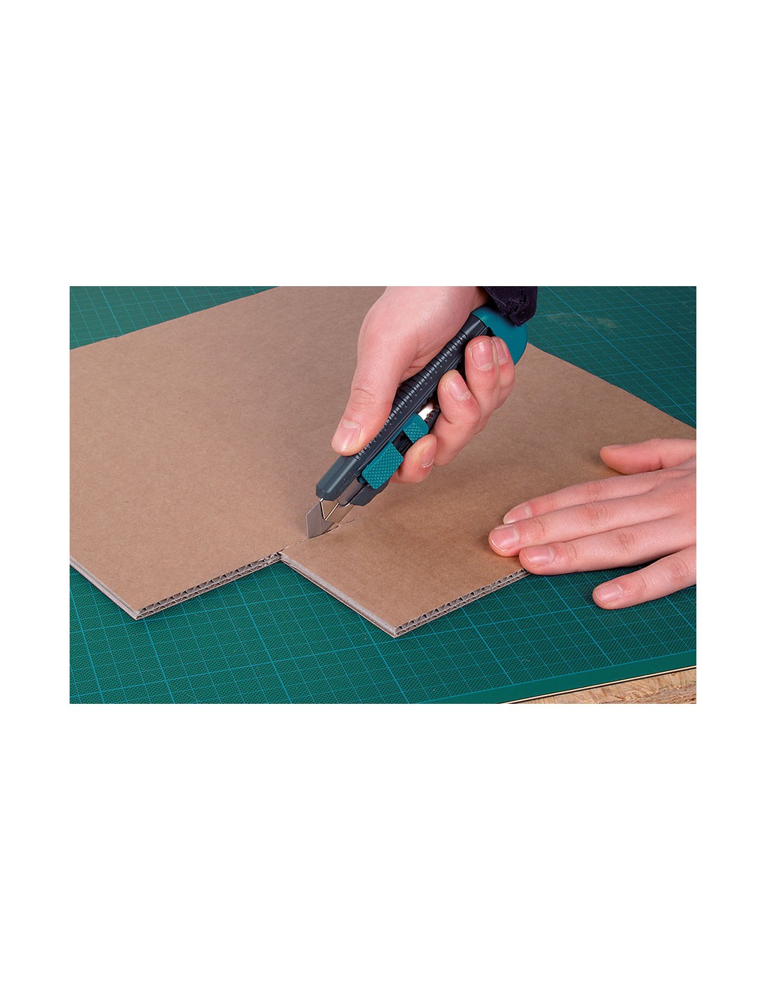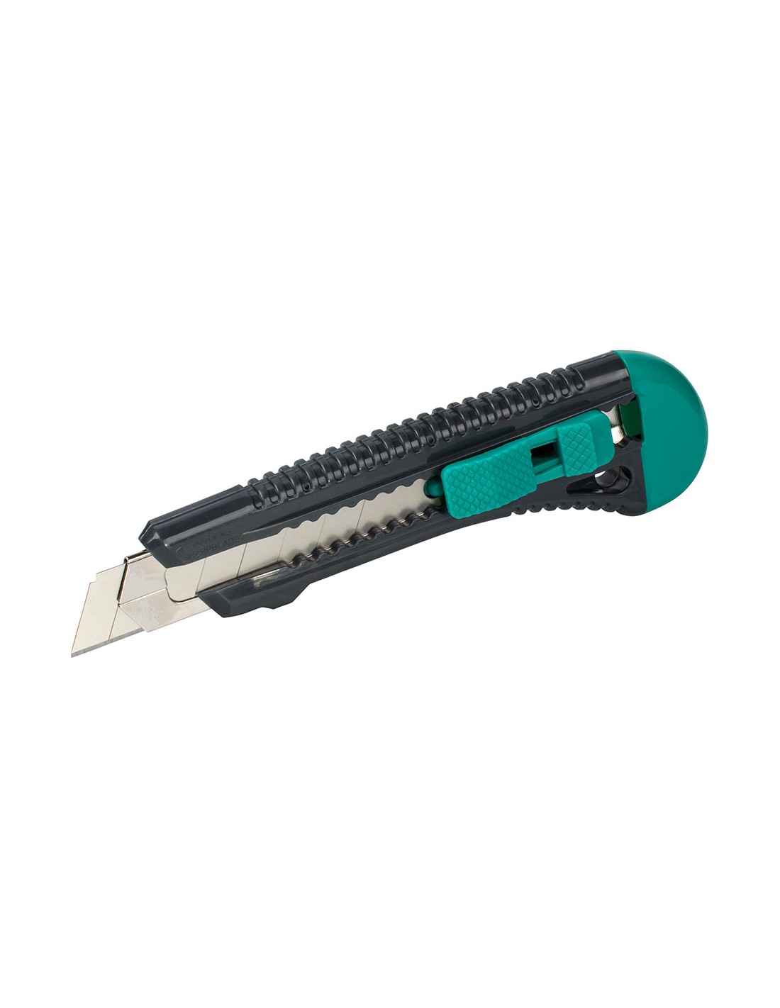 Cúter de cuchillas separables stándard de 18 mm cúter de plástico con guía metálica carcasa de plástico ergonómica y resistente con guía estable control deslizante con función de bloqueo automático tapa extraíble para separar la cuchilla de forma segura y para el cambio de cuchilla