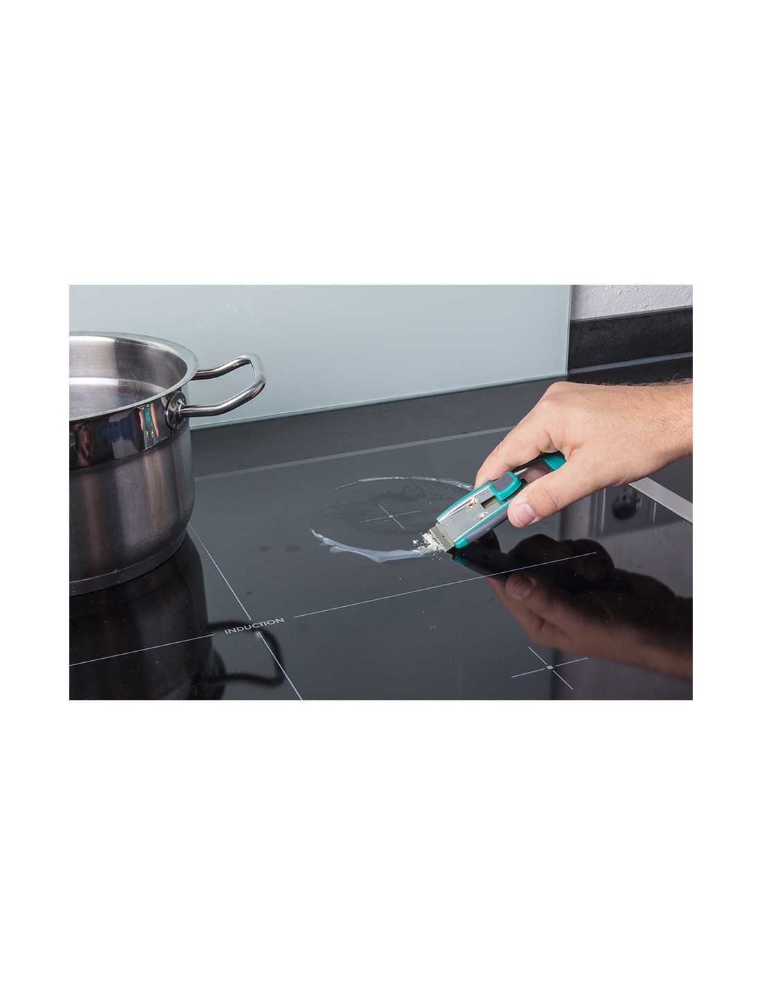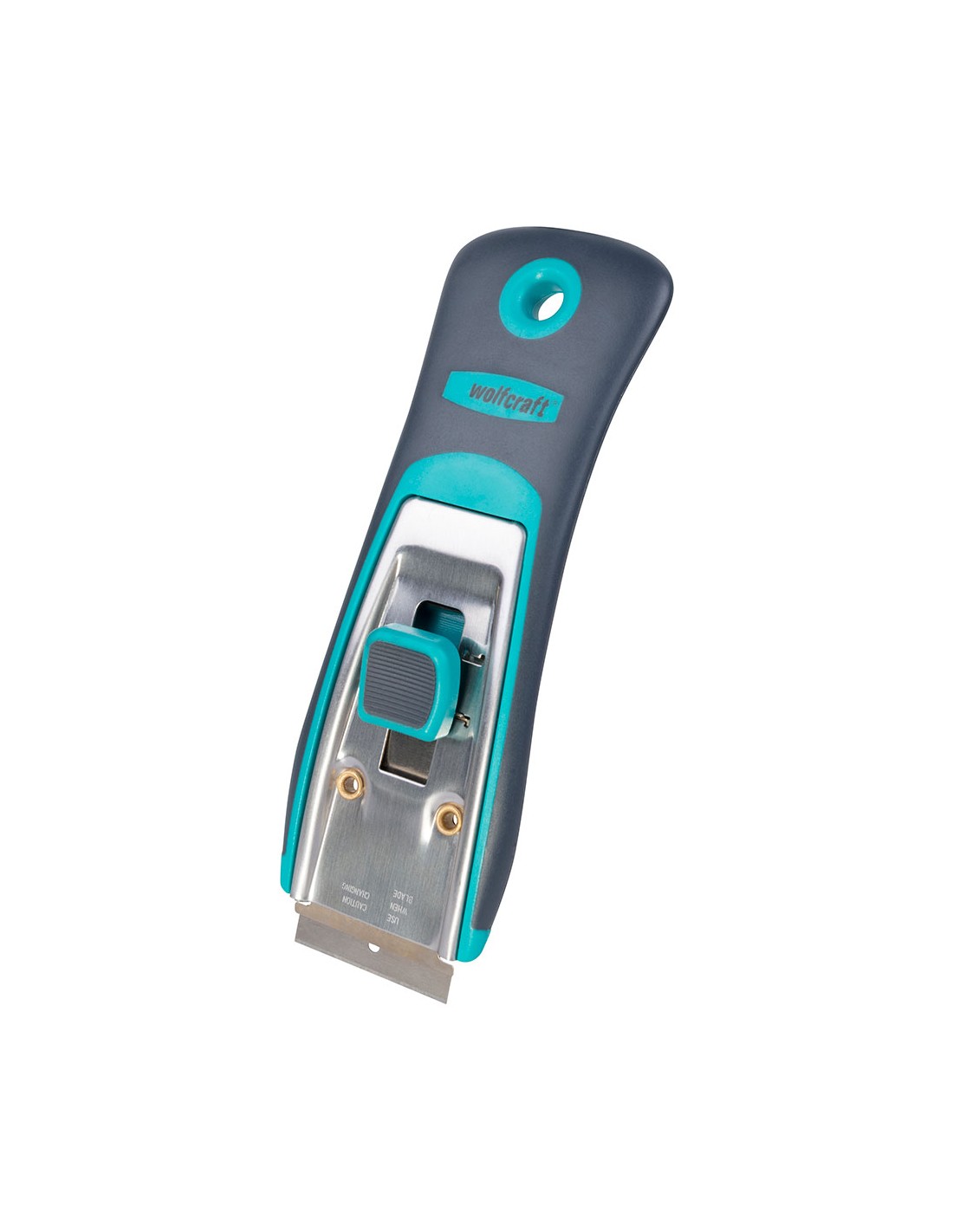 Rascador profesional de metal para la limpieza profesional de superficies lisas carcasa de plástico reforzado con metal con zona blanda ergonómica robusta guía de la hoja de metal cambio de cuchilla sin herramientas, compatible con todas cuchillas rascadoras convencionales de 38 mm
