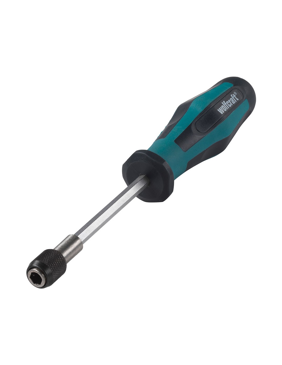 Atornillador manual con portapuntas, largo para atornillar en profundidad longitud del producto: 197mm atornillador manual con portapuntas magnético y vástago extralargo mandril de cambio rápido con enganche hexagonal de ¼ mango de 2 componentes ergonómico peso: 0,112kg 8725000 wolfcraft"