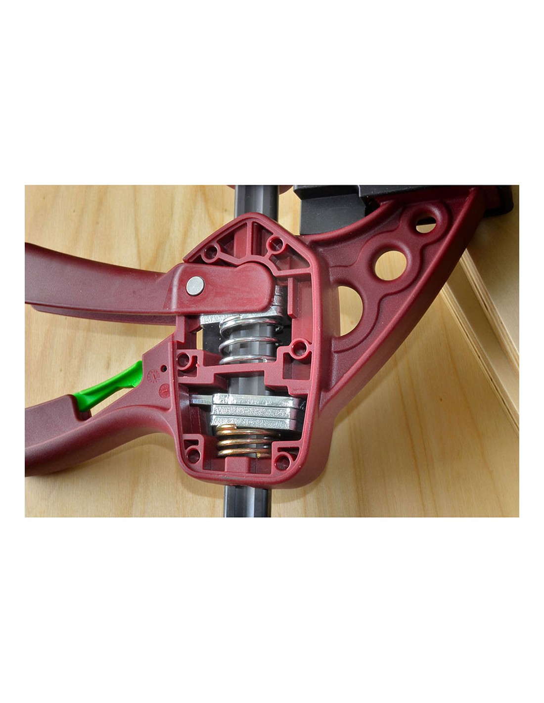 Sargento quick 30 cm extra. presión máxima:150 kg. cabezales de nylon y fibra de vidrio. barra de acero al carbono endurecido 19 x 6,3 mm. reversible fácilmente con un sólo clic. zapatas antideslizantes de 7,4 cm. ligero y fácil de usar con una sola mano.doble juego de 3 pletinas para avance y freno. medidas:49,5 x 22 x 3,5 cm