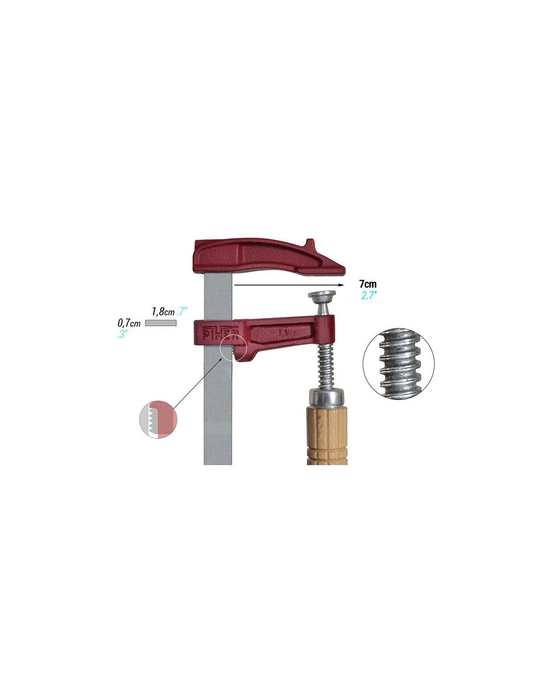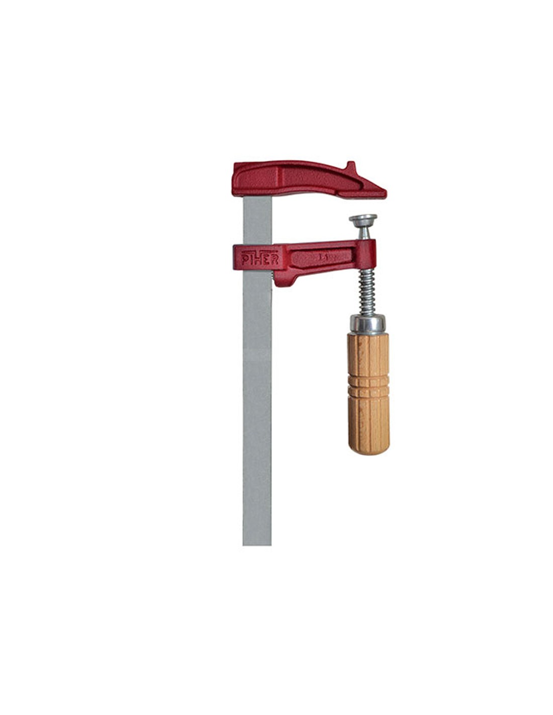 Aprieto piher m-20 cm. madera ref. 02020. aprieto modelo mm con mango de madera de haya. alcance 7 cm. llanta 18 x 7 mm. llanta de acero calibrada. fuerza máxima 4000n. freno anti-deslizante en cabez móvil. peso: 0,52 kg. medidas: 26,7 x 9,5 x 2 cm