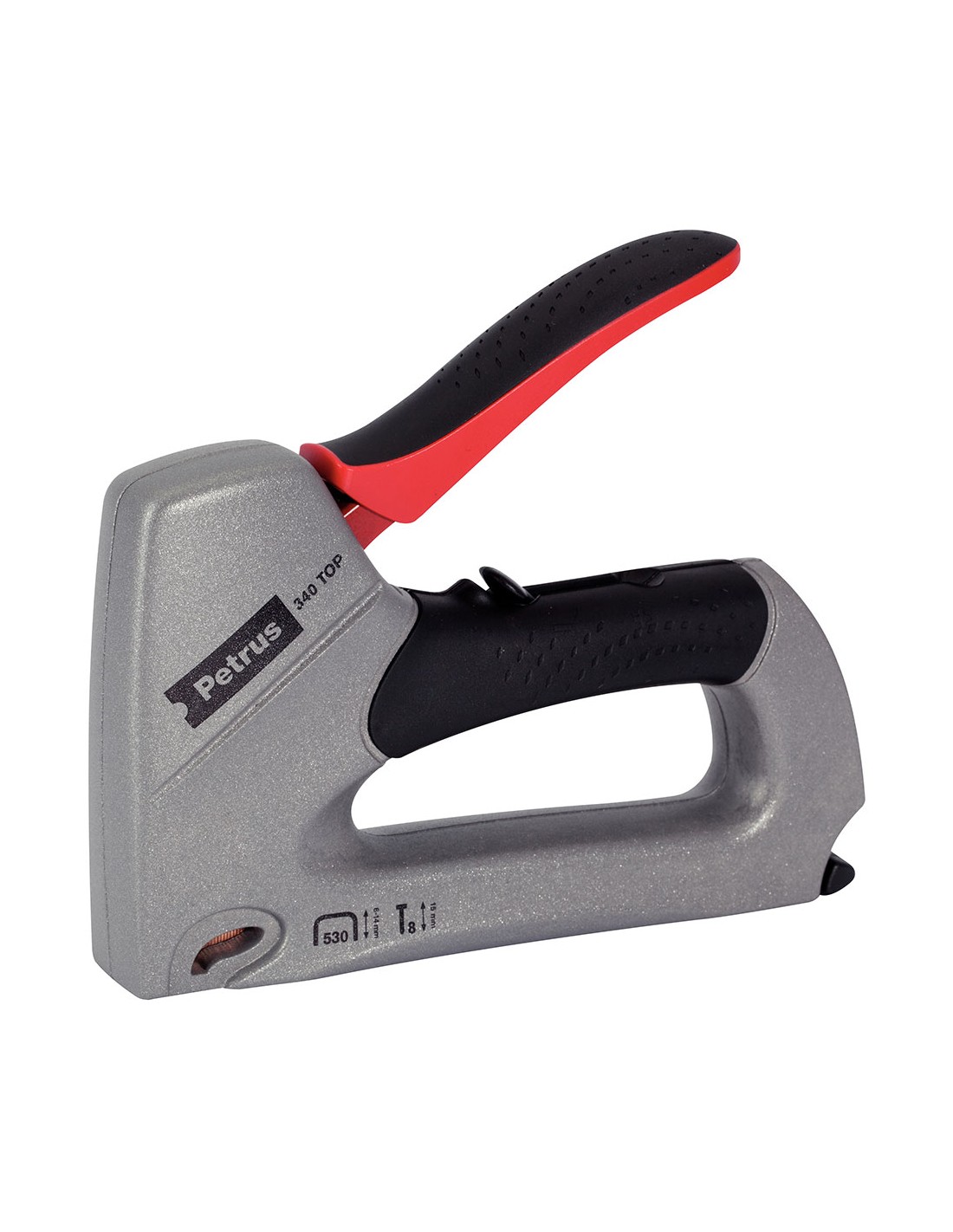 Clavadora mod. 340 tipo de grapa longitud de grapa 6/14mm 530 top. clavadora ligera, potente y duradera con gran capacidad para el bricolaje. ideal para tejidos, piel, cartones, mallas, etc. con ajuste de potencia. medida: 200 x 45 x 205 mm