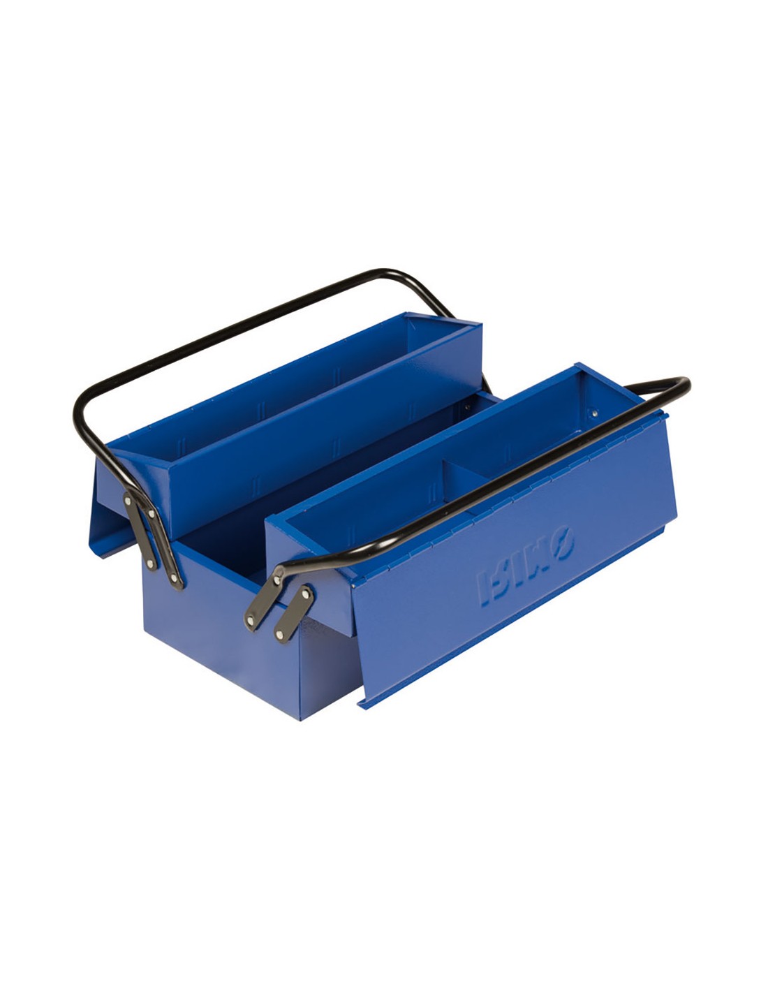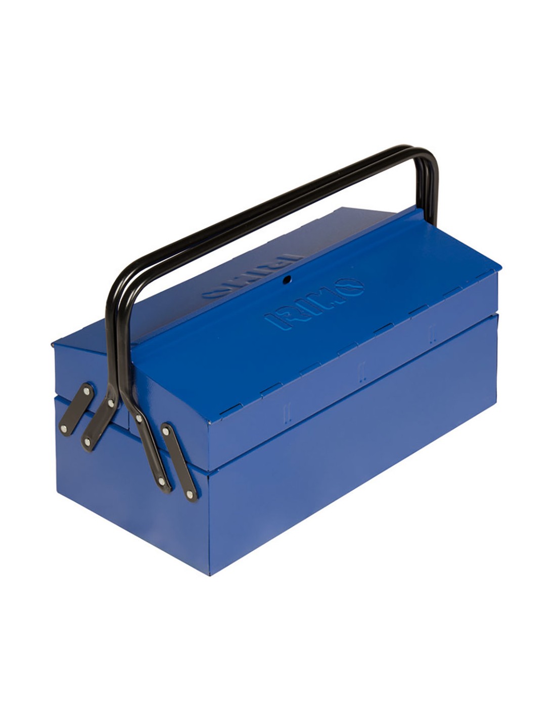 Caja con 2 asas de tubo y fijas y 3 bandejas. coloque divisores en las bandejas superiores para almacenar pequeñas piezas de forma organizada. el sistema de bisagra permite una apertura sencilla de las tapas e impide que entre polvo. la caja puede bloquearse con un candado usando los orificios de las tapas. todas las esquinas están limadas o dobladas para evitar cortes. fabricada con una lámina de metal de alta calidad. dimensiones internas de las bandejas superiores: 75×495×100mm. dimensiones internas de las bandejas intermedias: 50×495×100mm. dimensiones internas de la bandeja inferior: 105×495×205mm. total: 400x210x190mm