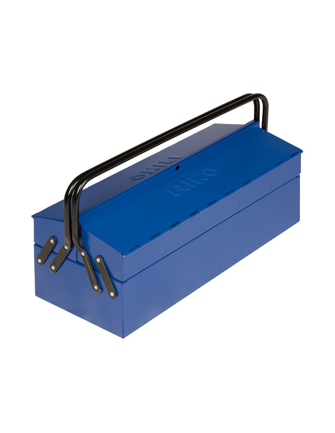 Caja con 2 asas de tubo y fijas y 3 bandejas. coloque divisores en las bandejas superiores para almacenar pequeñas piezas de forma organizada. el sistema de bisagra permite una apertura sencilla de las tapas e impide que entre polvo. la caja puede bloquearse con un candado usando los orificios de las tapas. todas las esquinas están limadas o dobladas para evitar cortes. fabricada con una lámina de metal de alta calidad. dimensiones internas de las bandejas superiores: 75×495×100mm. dimensiones internas de las bandejas intermedias: 50×495×100mm. dimensiones internas de la bandeja inferior: 105×495×205mm. total: 500 x 210 x 190 mm