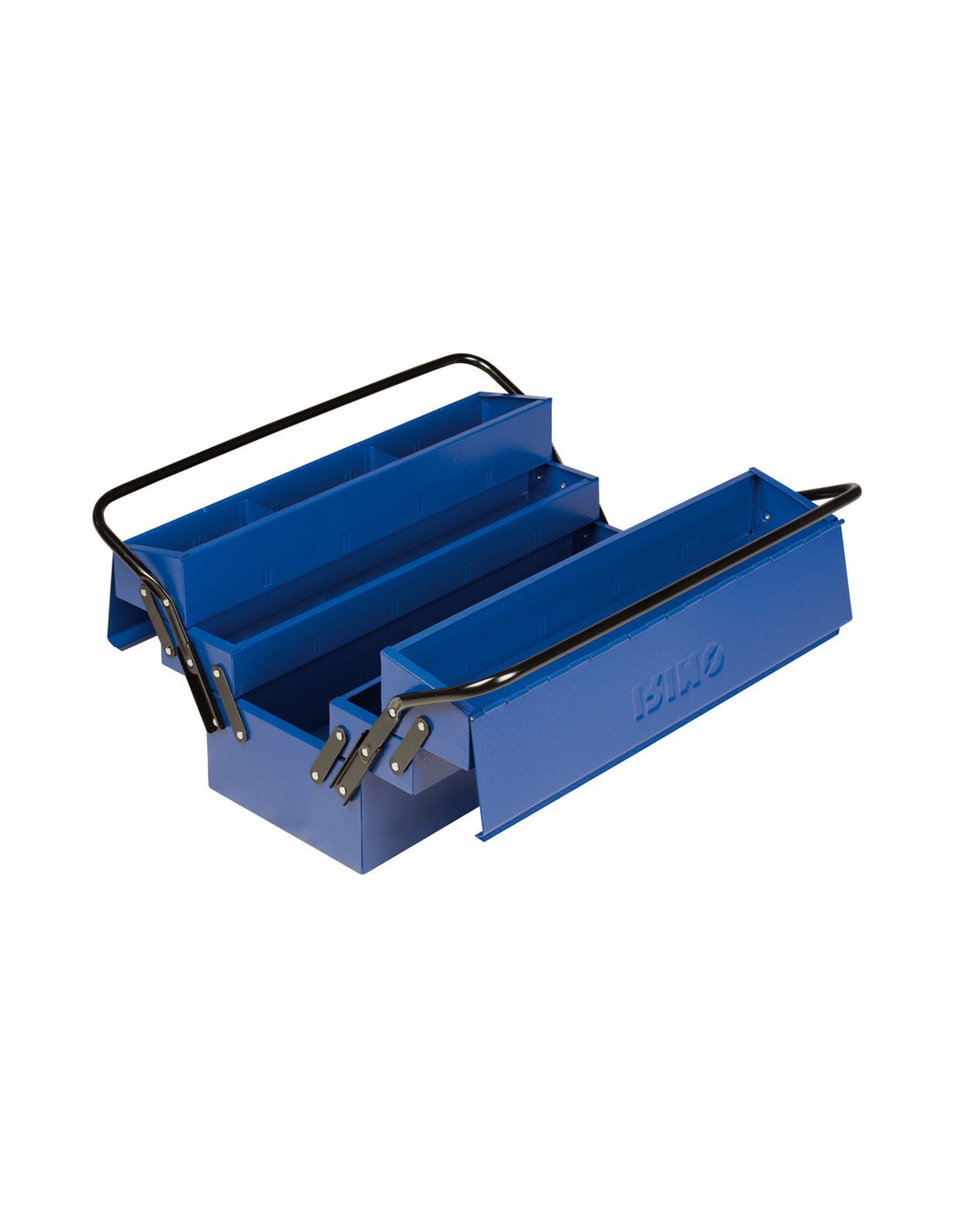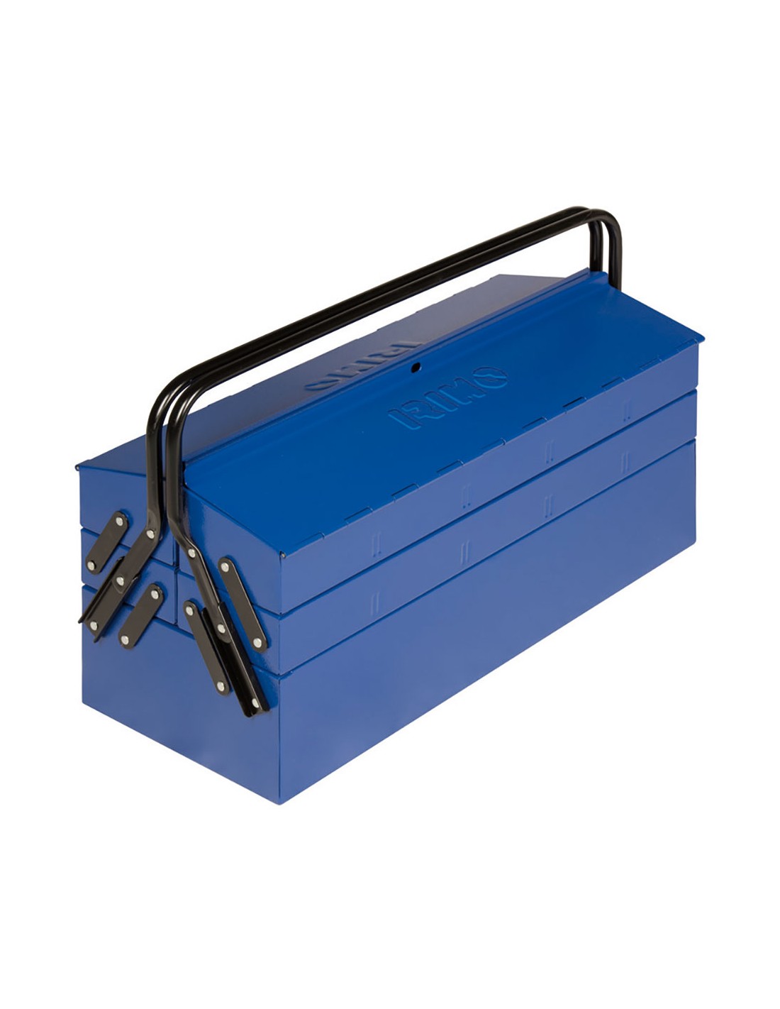 Caja con 2 asas de tubo y fijas y 5 bandejas. coloque divisores en las bandejas superiores para almacenar pequeñas piezas de forma organizada. el sistema de bisagra permite una apertura sencilla de las tapas e impide que entre polvo. la caja puede bloquearse con un candado usando los orificios de las tapas. todas las esquinas están limadas o dobladas para evitar cortes. fabricada con una lámina de metal de alta calidad. dimensiones internas de las bandejas superiores: 75×495×100mm. dimensiones internas de las bandejas intermedias: 50×495×100mm. dimensiones internas de la bandeja inferior: 105×495×205mm. total: 500 x 210 x 245 mm