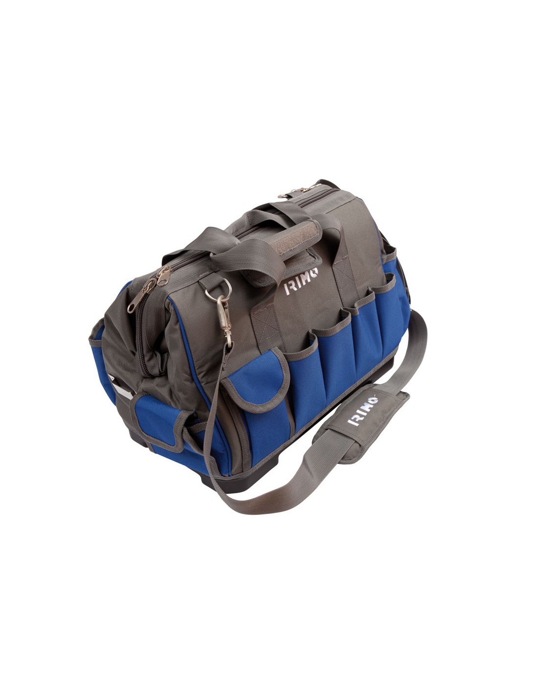 Bolsa de 16" con cierre de cremallera para ver y acceder de forma rápida y sencilla a las herramientas. parte inferior dura e impermeable. 10bolsillos exteriores de distintos tamaños y 14bolsillos interiores verticales para organizar mejor las herramientas. algunos bolsillos exteriores están cubiertos para ofrecer una mayor protección y también se incluye un soporte para cinta métrica. correa de hombro extraíble y acolchada en la parte ajustable (inglesa) del hombro. la tela de 600×300 deniers garantiza el rendimiento y la durabilidad del producto