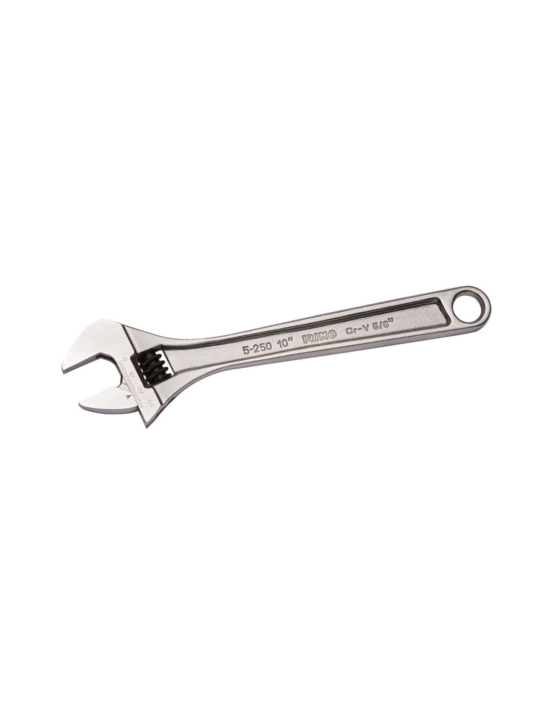 Llave ajustable (inglesa) de moleta central 12 cromada 5-300c-1. lamordaza no se cae aunque la llave se abra al máximo. escala en mm para prefijar y realizar mediciones precisas. en paralelo con un ángulo de 15°, las mordazas ofrecen un agarre firme y el mejor alcance. aleación de acero de alto rendimiento forjado en una única pieza. acabado cromado, endurecido con precisión y con tratamiento anticorrosión. normas: iso6787, din3117, asme b107.8-2003 y bs6333. -1blíster y 2embalajes industriales."