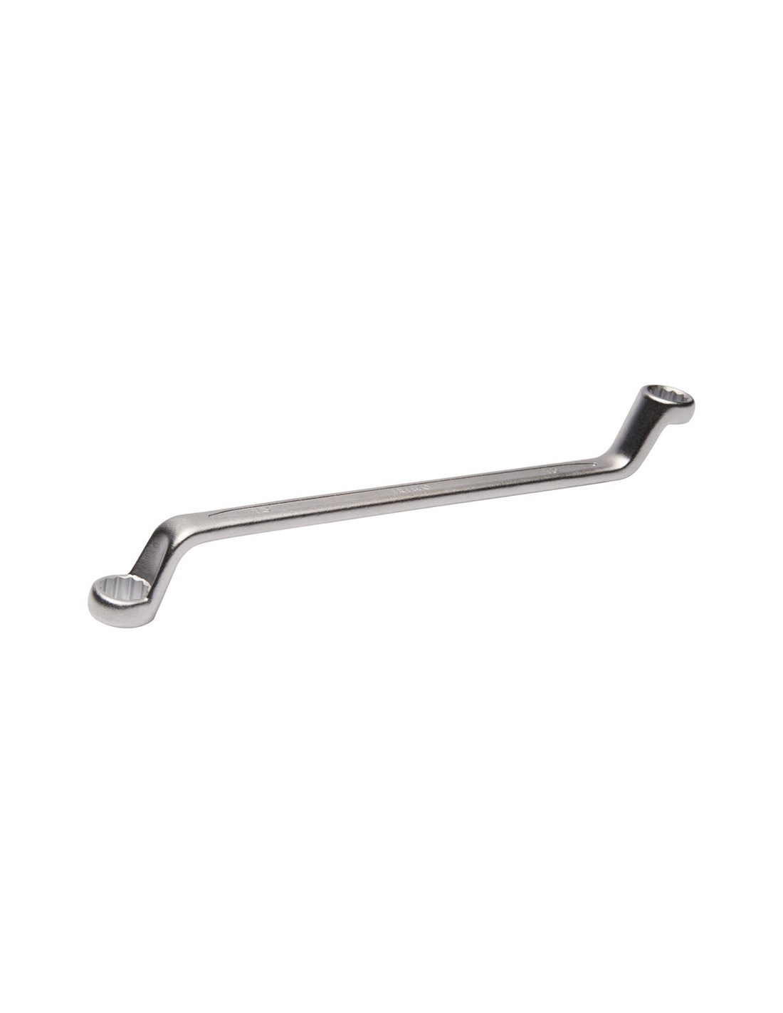 Llave de estrella extra-acodada en dimensiones métricas. acabado: cromado mate. material: aleación de acero de alto rendimiento. dureza: 42-48hrc. normas: iso10104 y din838. -1blíster y 2embalajes industriales