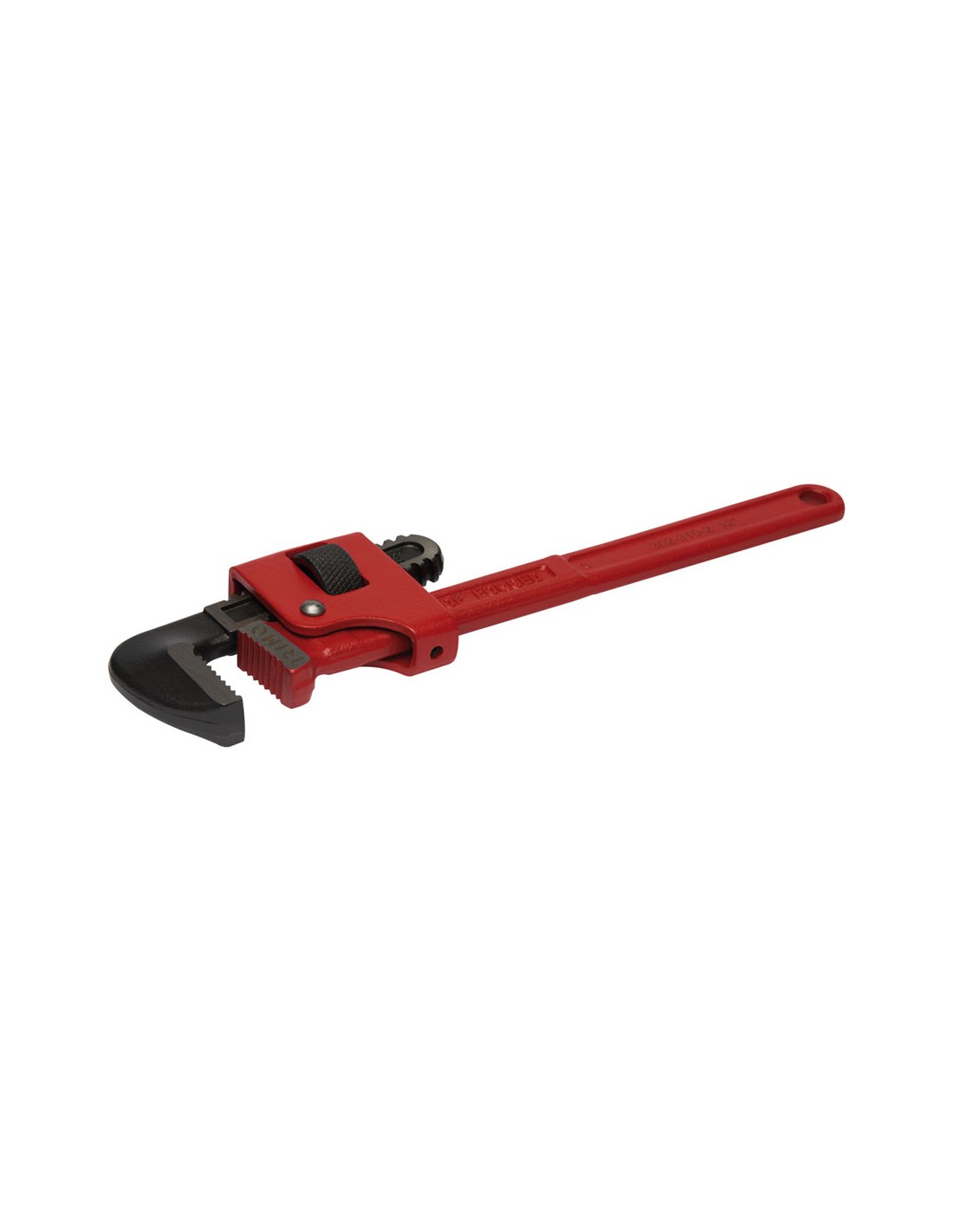 Llave stillson (grifa) con autosujeción y diseño tradicional para uso con una mano. cuerpo fabricado en acero forjado tradicional, tratado anticorrosión. mordazas dentadas templadas por inducción de larga duración y una dureza de 55-60hrc. cuerpo con tratamiento anticorrosión. pintura epoxi. para tubos de 1" a 4". embalaje unitario en caja de cartón. normas: norma estadounidense ggg-w-651, tipo i, claseb une16554